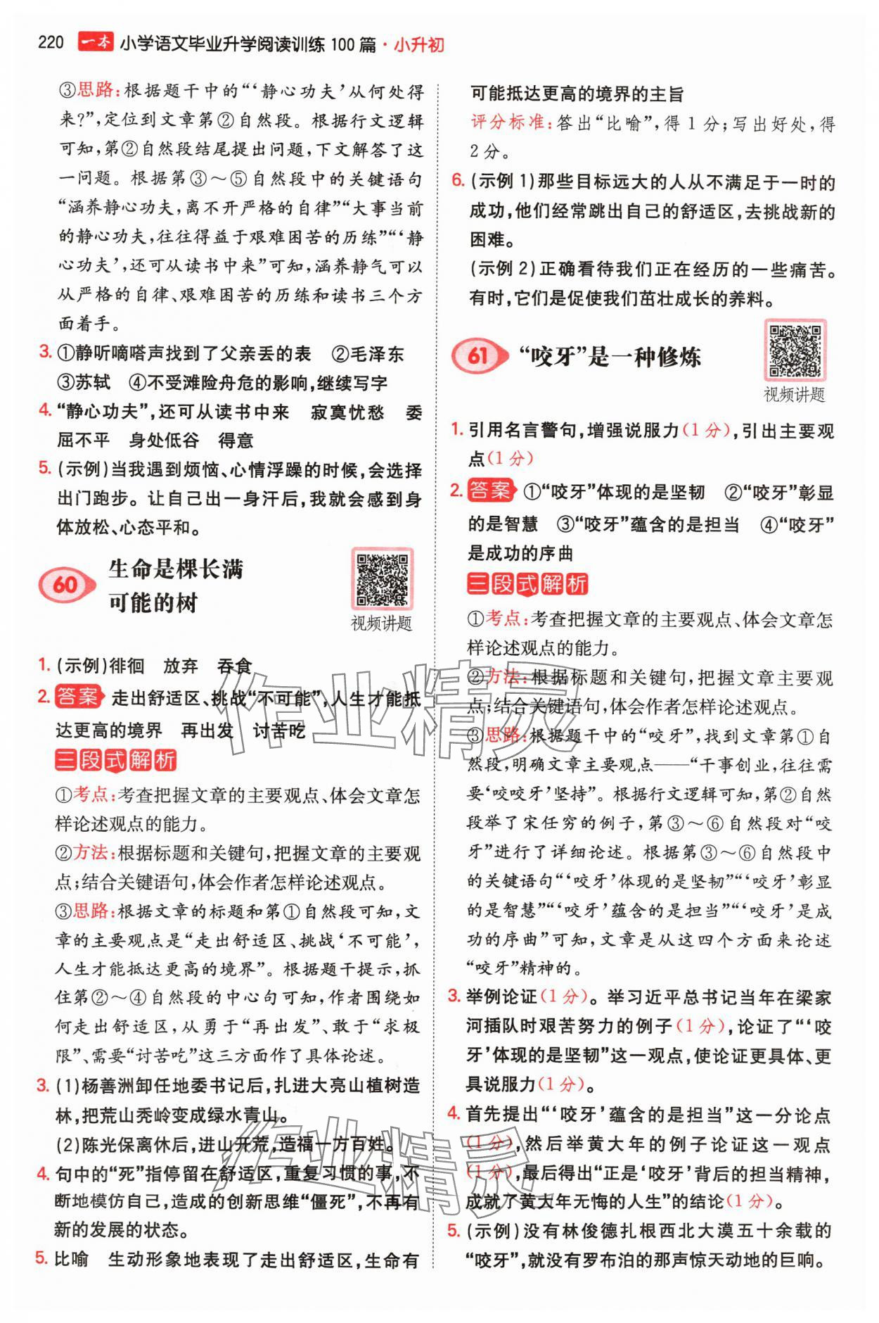 注:目前有些书本章节名称可能整理的还不是很完善,但都是按照顺序排列的,请同学们按照顺序仔细查找。练习册 2024年一本小升初小学语文毕业升学阅读训练100篇 答案主要是用来给同学们做完题方便对答案用的,请勿直接抄袭。