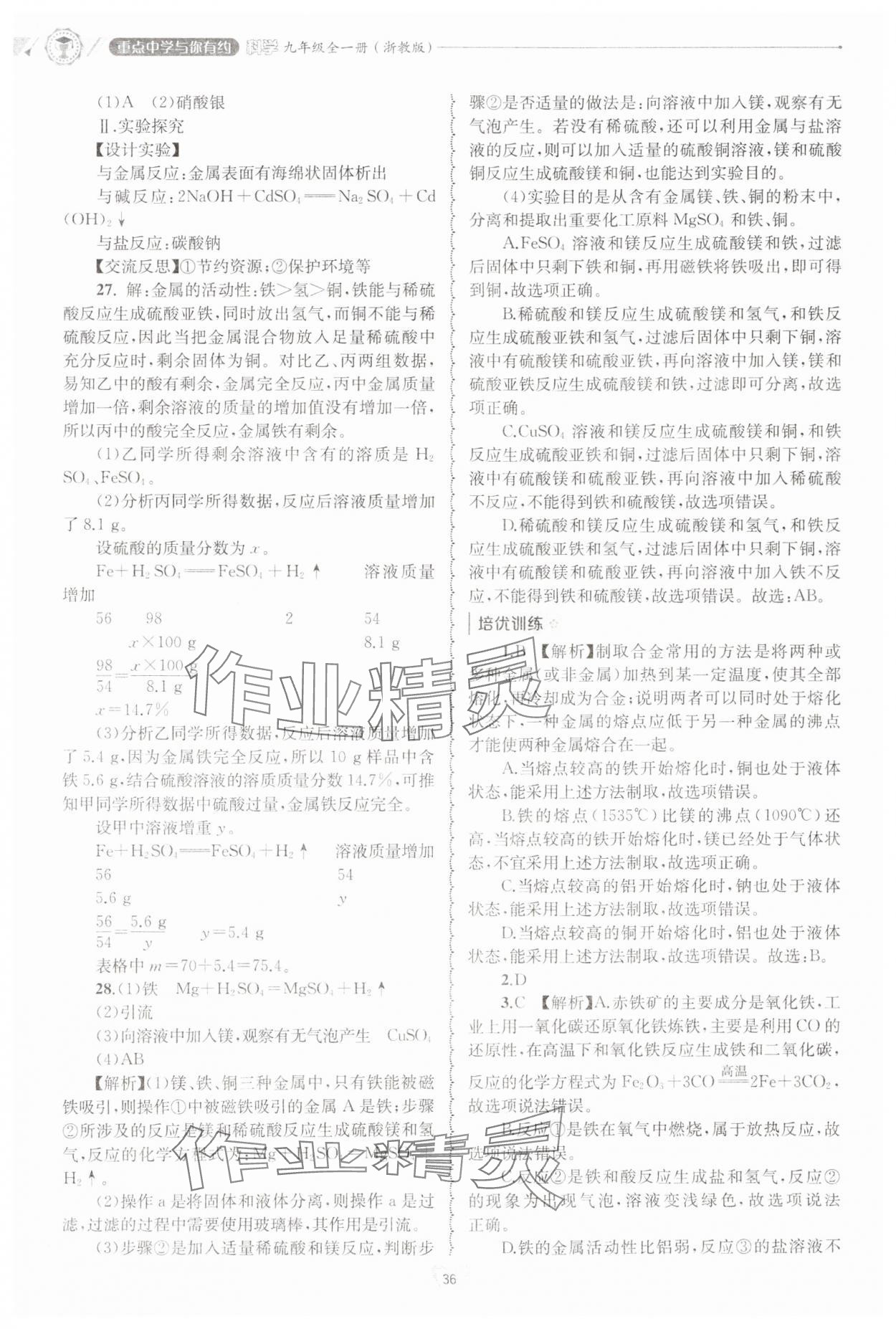 注:目前有些书本章节名称可能整理的还不是很完善,但都是按照顺序排列的,请同学们按照顺序仔细查找。练习册 2024年重点中学与你有约九年级科学全一册浙教版 答案主要是用来给同学们做完题方便对答案用的,请勿直接抄袭。