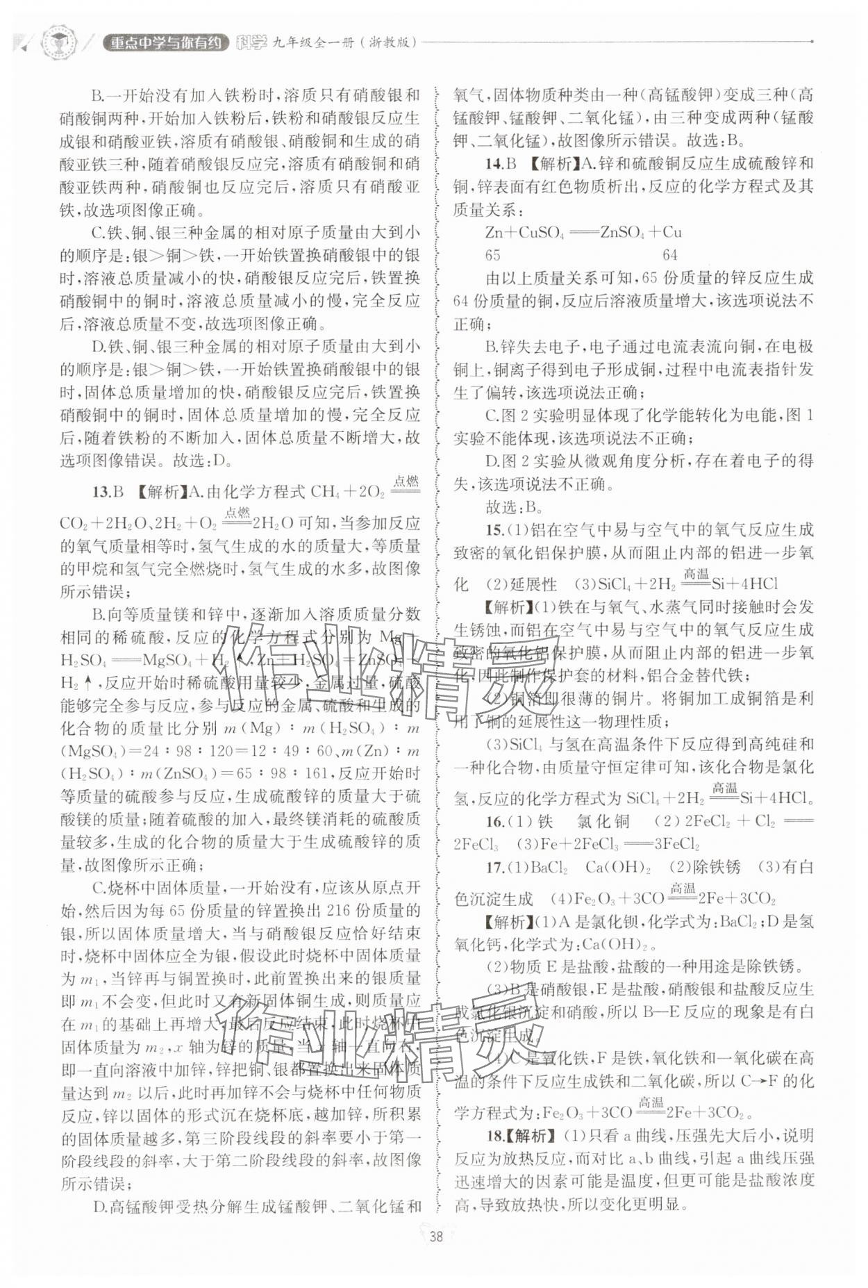 注:目前有些书本章节名称可能整理的还不是很完善,但都是按照顺序排列的,请同学们按照顺序仔细查找。练习册 2024年重点中学与你有约九年级科学全一册浙教版 答案主要是用来给同学们做完题方便对答案用的,请勿直接抄袭。
