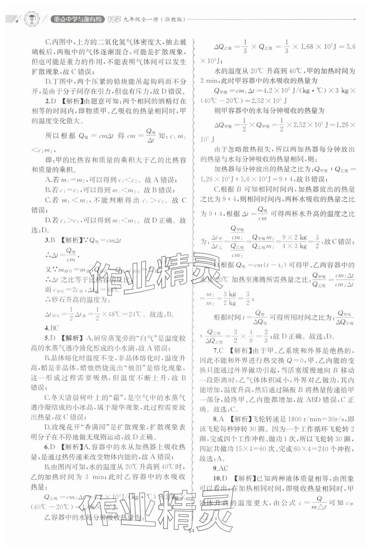 注:目前有些书本章节名称可能整理的还不是很完善,但都是按照顺序排列的,请同学们按照顺序仔细查找。练习册 2024年重点中学与你有约九年级科学全一册浙教版 答案主要是用来给同学们做完题方便对答案用的,请勿直接抄袭。