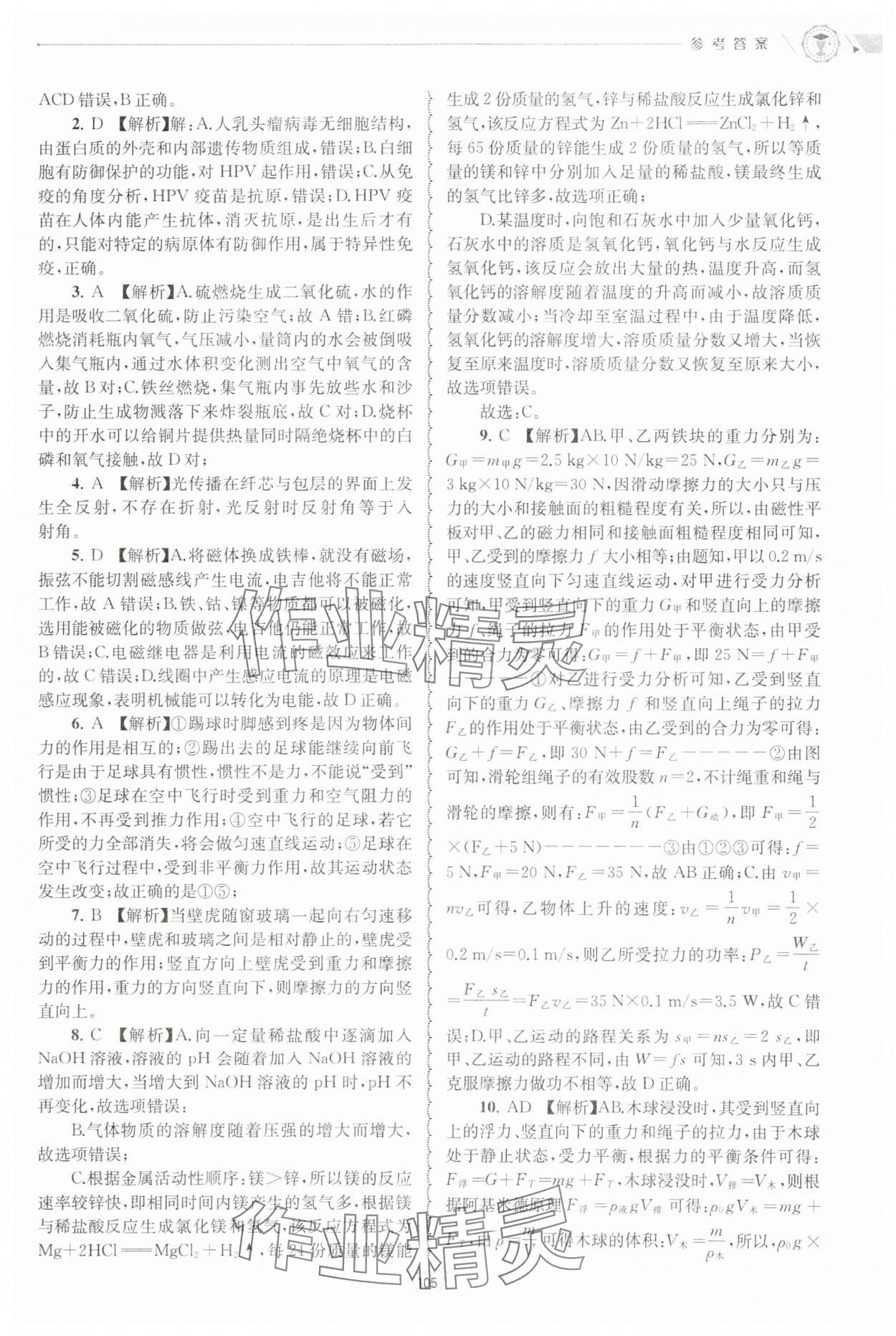 注:目前有些书本章节名称可能整理的还不是很完善,但都是按照顺序排列的,请同学们按照顺序仔细查找。练习册 2024年重点中学与你有约九年级科学全一册浙教版 答案主要是用来给同学们做完题方便对答案用的,请勿直接抄袭。