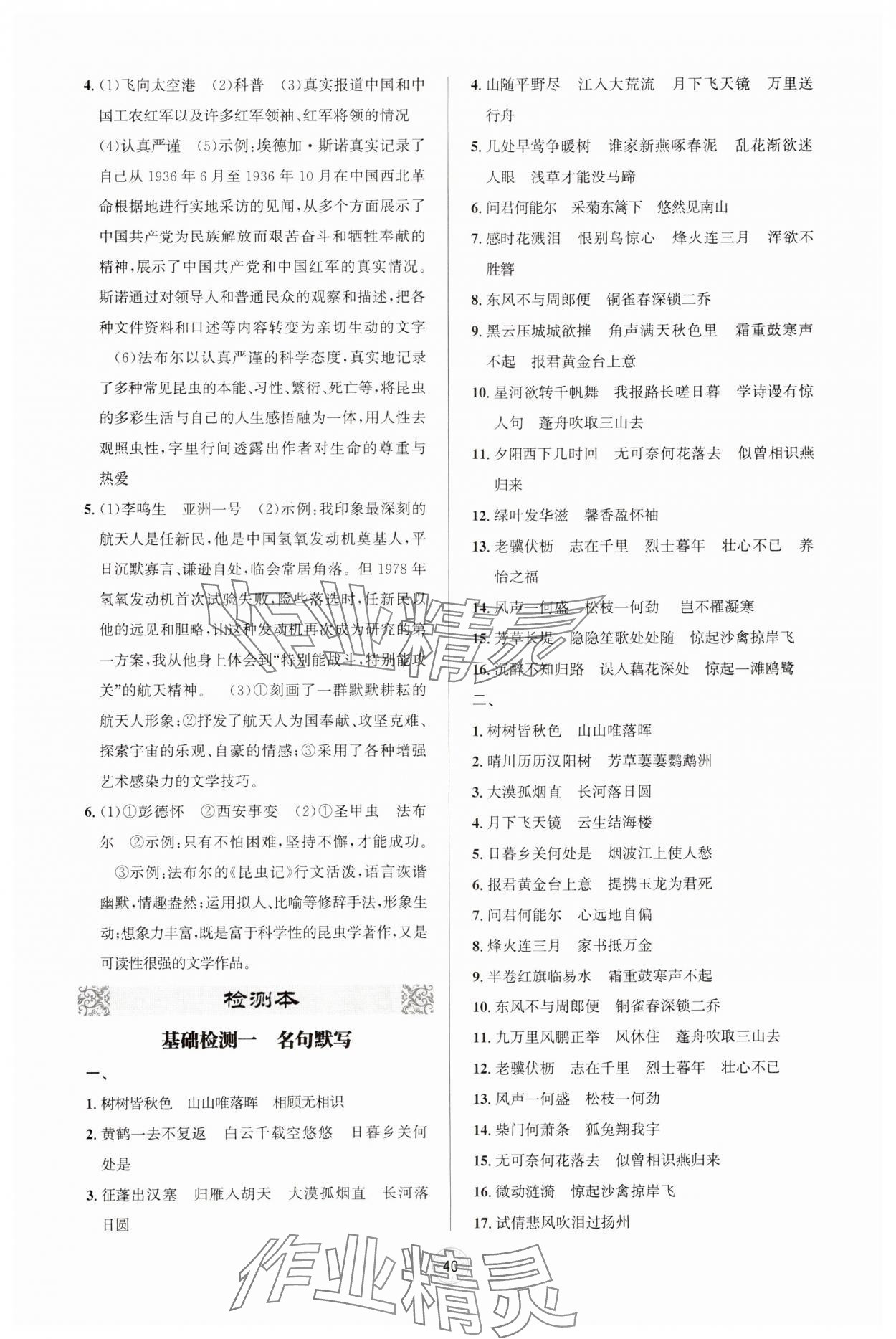注:目前有些书本章节名称可能整理的还不是很完善,但都是按照顺序排列的,请同学们按照顺序仔细查找。练习册 2024年古诗文与名著阅读八年级语文上册人教版 答案主要是用来给同学们做完题方便对答案用的,请勿直接抄袭。
