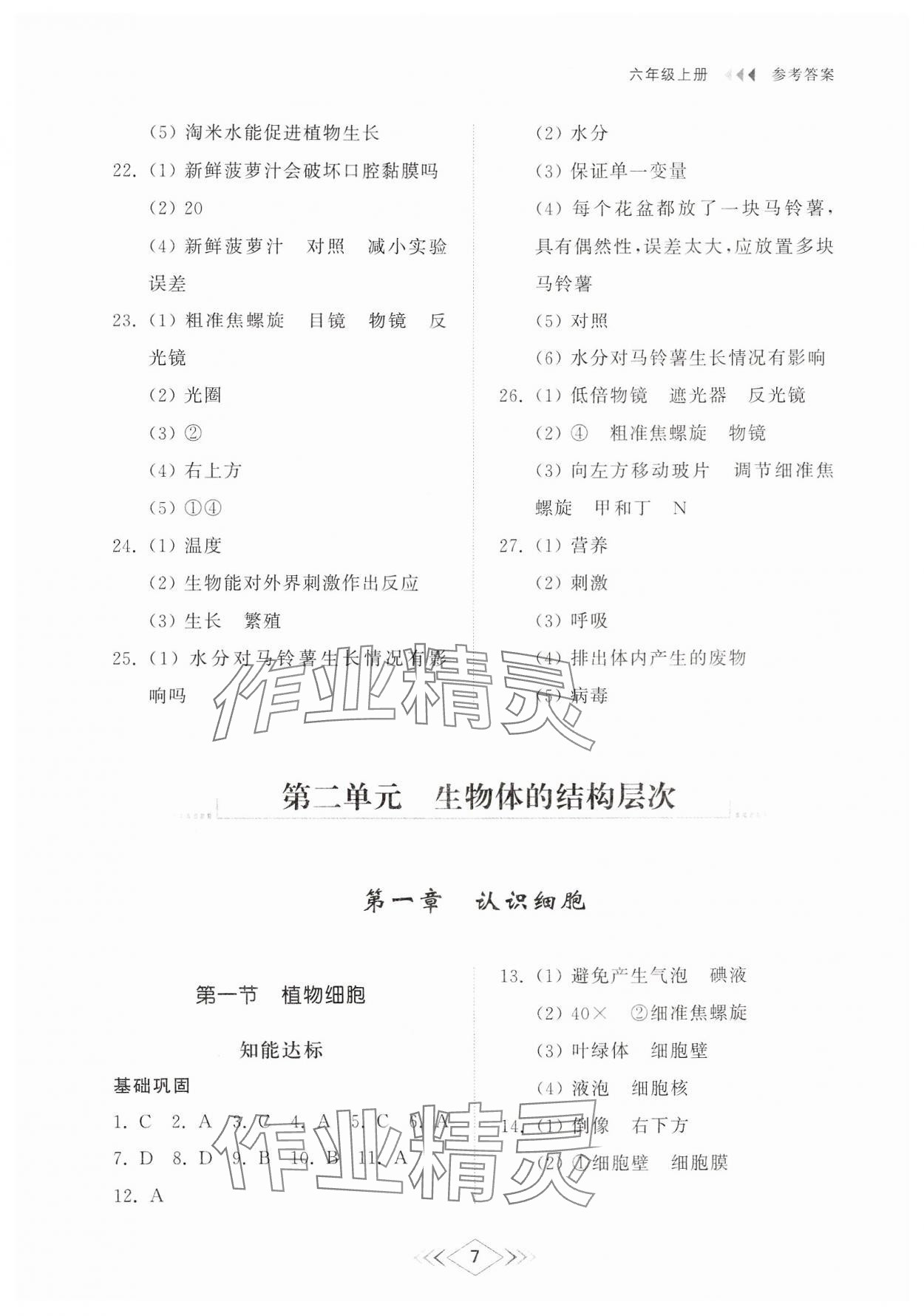 注:目前有些书本章节名称可能整理的还不是很完善,但都是按照顺序排列的,请同学们按照顺序仔细查找。练习册 2024年综合能力训练六年级生物上册鲁科版54制 答案主要是用来给同学们做完题方便对答案用的,请勿直接抄袭。
