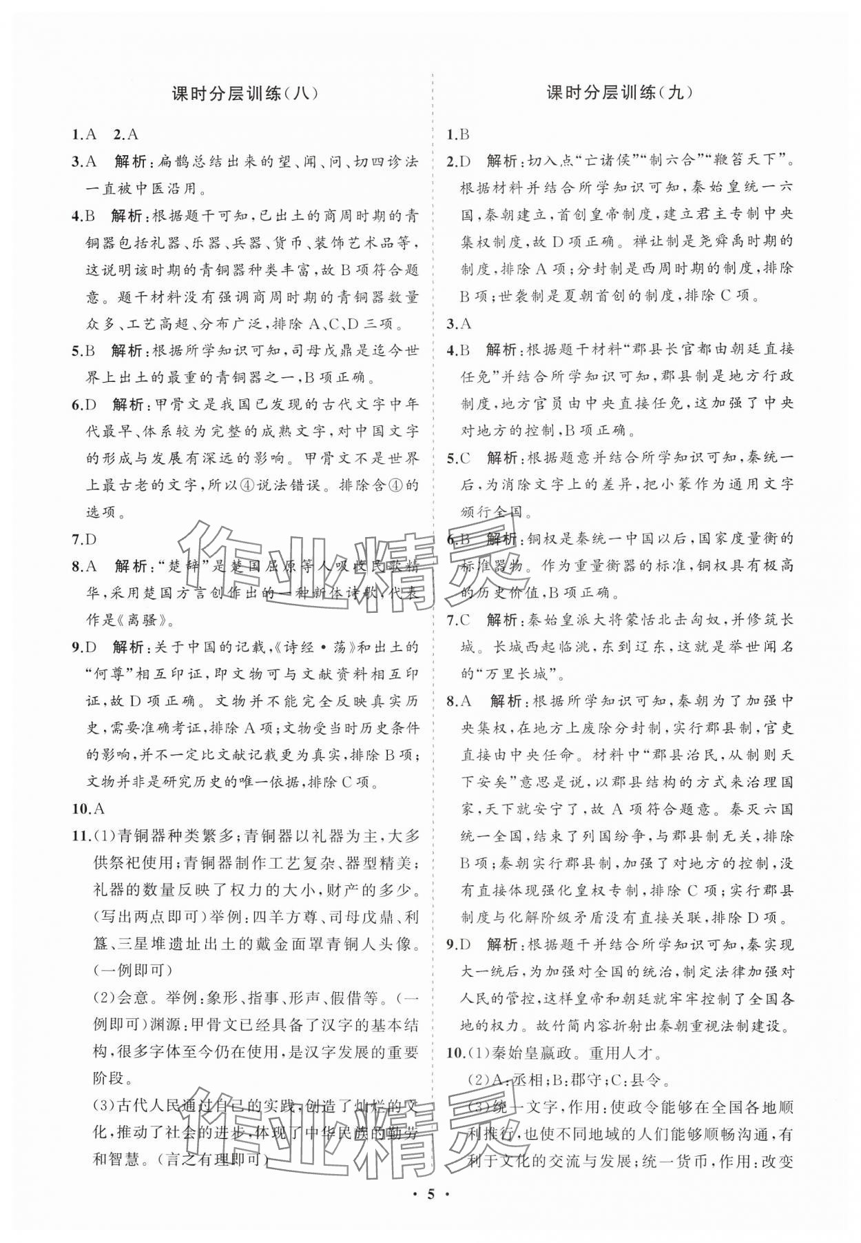 2024年同步练习册分层卷六年级历史第一册人教版五四制