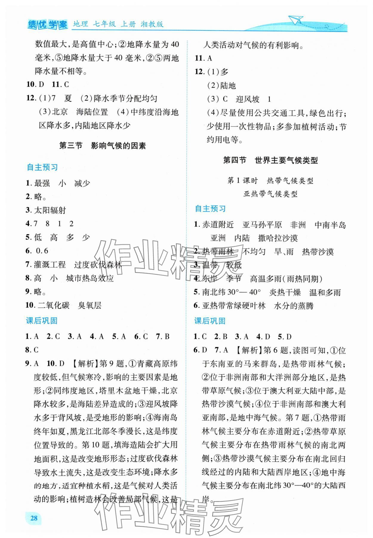 注:目前有些书本章节名称可能整理的还不是很完善,但都是按照顺序排列的,请同学们按照顺序仔细查找。练习册 2024年绩优学案七年级地理上册湘教版 答案主要是用来给同学们做完题方便对答案用的,请勿直接抄袭。