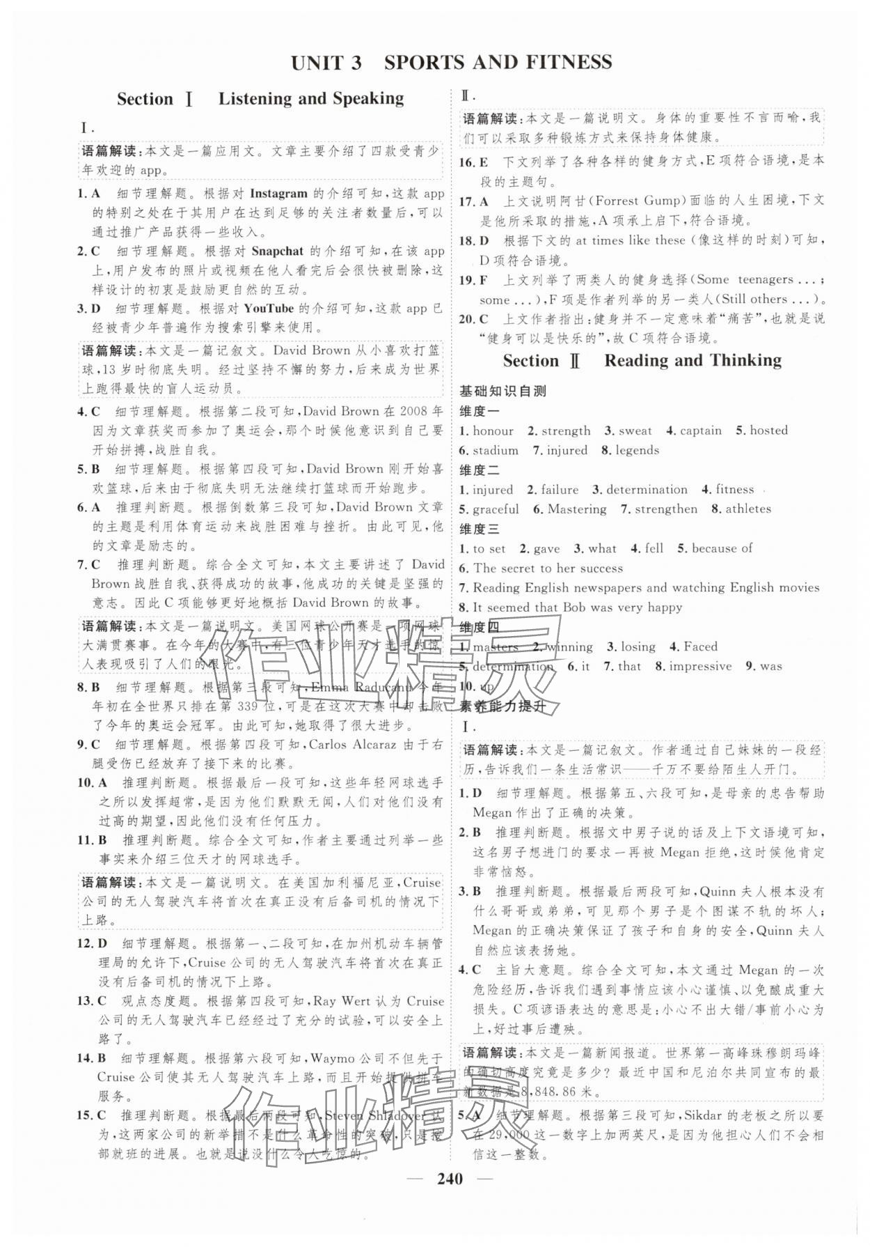 注:目前有些书本章节名称可能整理的还不是很完善,但都是按照顺序排列的,请同学们按照顺序仔细查找。练习册 2024年三维设计高中英语必修第一册人教版 答案主要是用来给同学们做完题方便对答案用的,请勿直接抄袭。