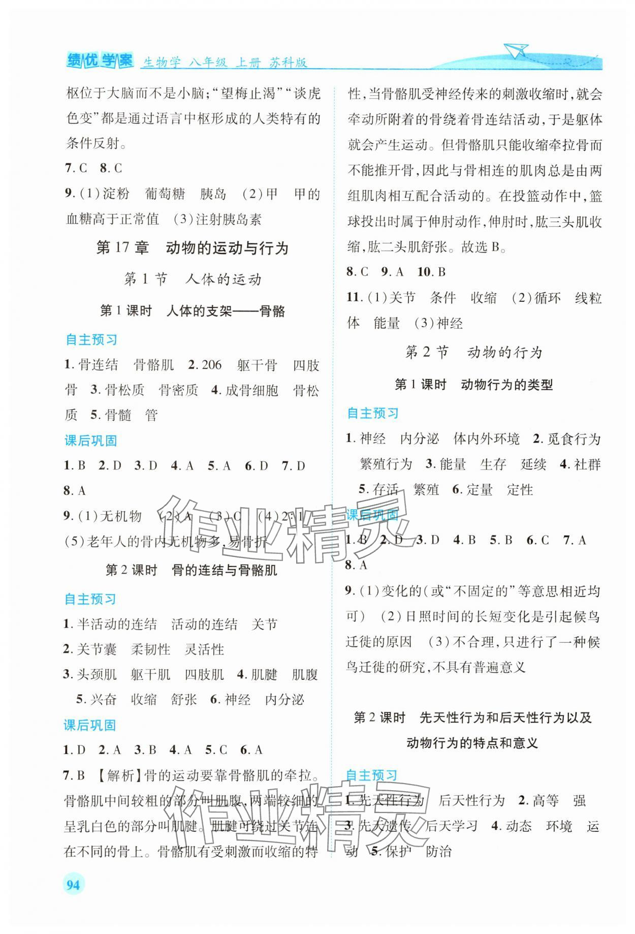 注:目前有些书本章节名称可能整理的还不是很完善,但都是按照顺序排列的,请同学们按照顺序仔细查找。练习册 2024年绩优学案八年级生物上册苏科版 答案主要是用来给同学们做完题方便对答案用的,请勿直接抄袭。