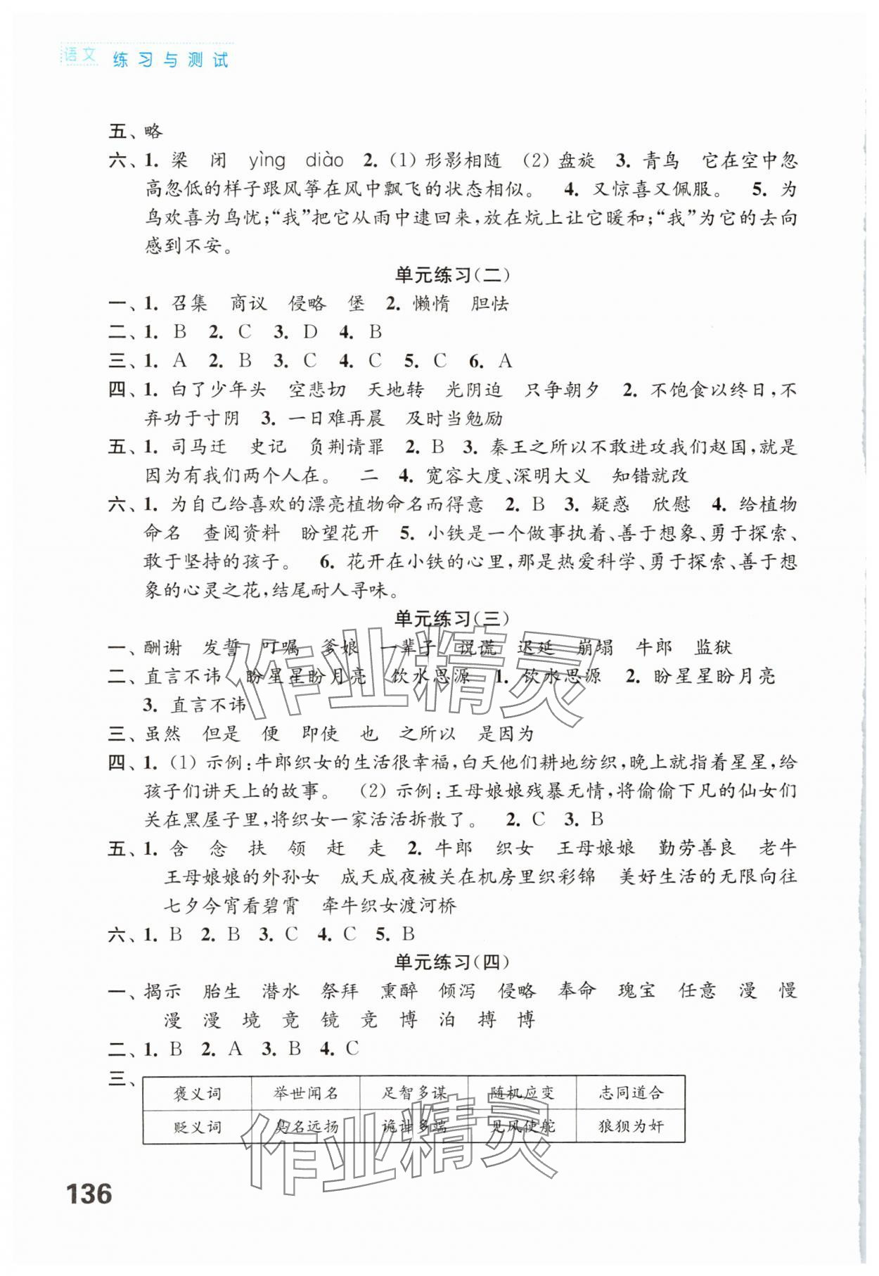 注:目前有些书本章节名称可能整理的还不是很完善,但都是按照顺序排列的,请同学们按照顺序仔细查找。练习册 2024年练习与测试五年级语文上册人教版陕西专版 答案主要是用来给同学们做完题方便对答案用的,请勿直接抄袭。