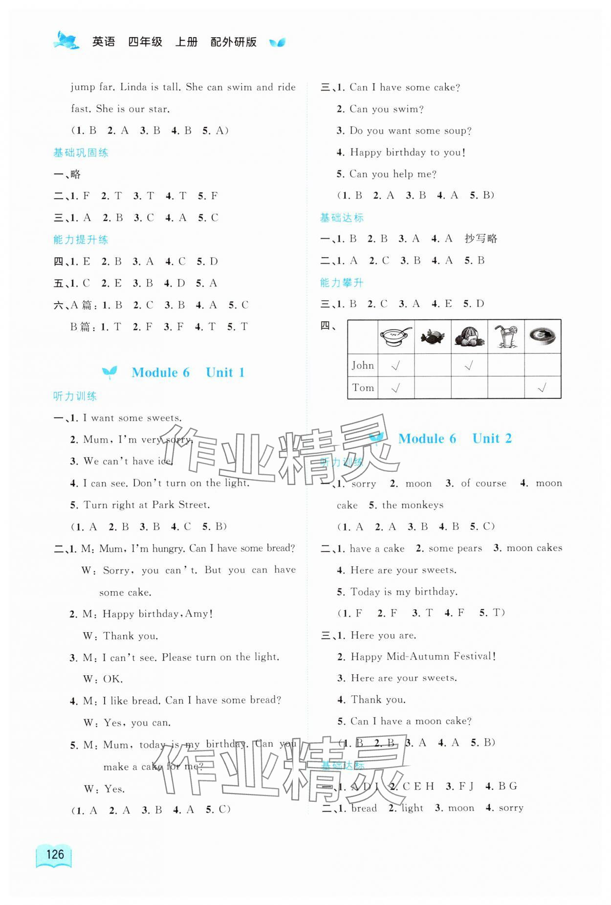 注:目前有些书本章节名称可能整理的还不是很完善,但都是按照顺序排列的,请同学们按照顺序仔细查找。练习册 2024年新课程学习与测评同步学习四年级英语上册外研版 答案主要是用来给同学们做完题方便对答案用的,请勿直接抄袭。