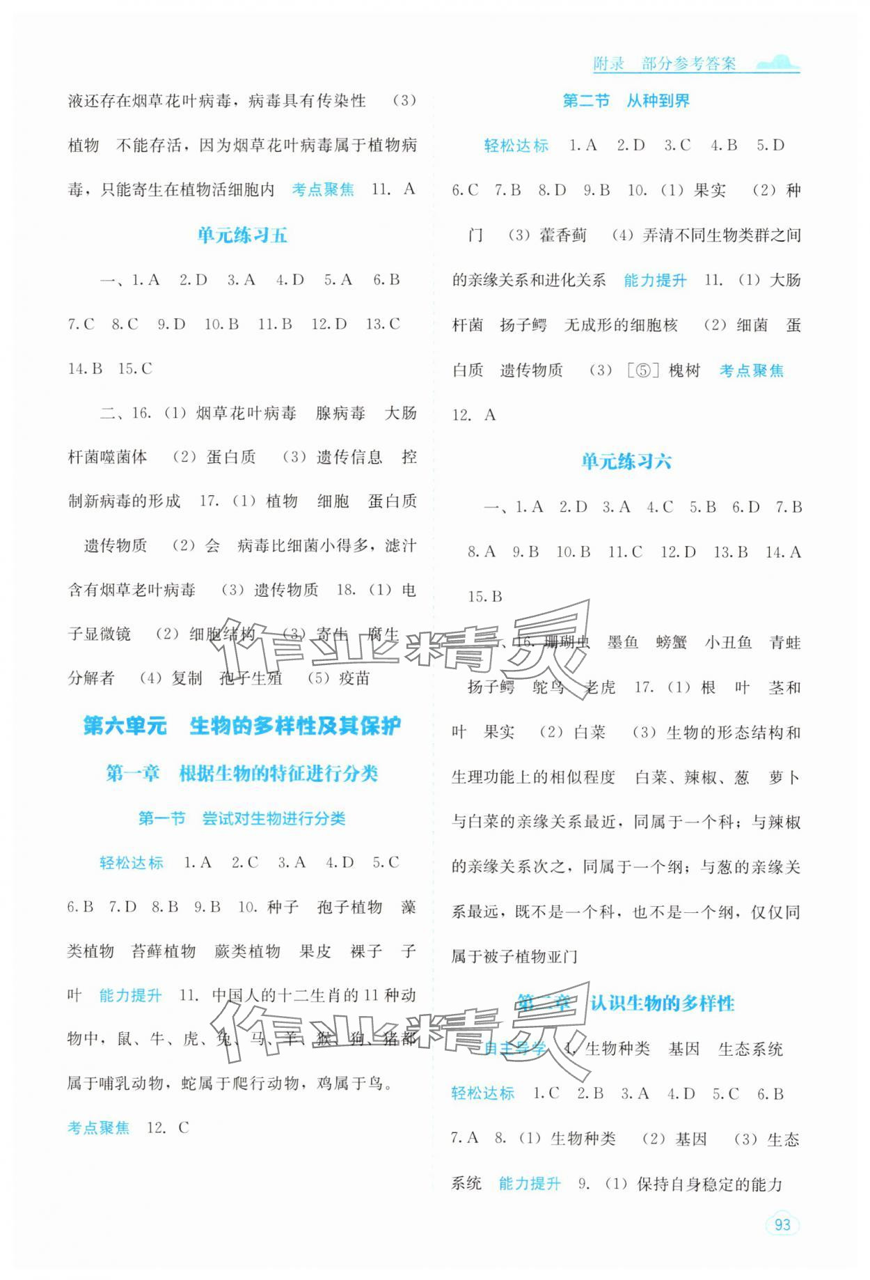 注:目前有些书本章节名称可能整理的还不是很完善,但都是按照顺序排列的,请同学们按照顺序仔细查找。练习册 2024年自主学习能力测评八年级生物上册人教版 答案主要是用来给同学们做完题方便对答案用的,请勿直接抄袭。