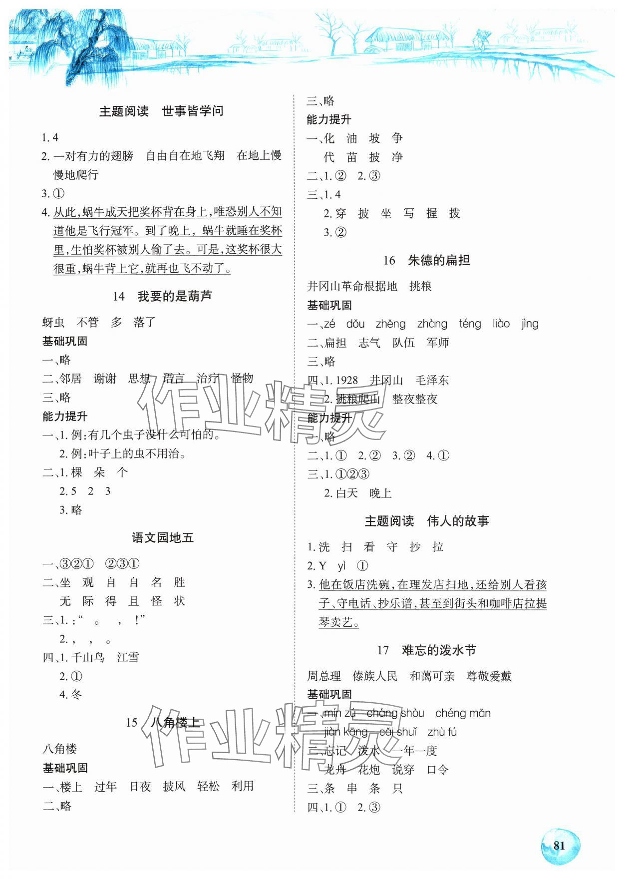 注:目前有些书本章节名称可能整理的还不是很完善,但都是按照顺序排列的,请同学们按照顺序仔细查找。练习册 2024年长江全能学案课堂作业二年级语文上册人教版 答案主要是用来给同学们做完题方便对答案用的,请勿直接抄袭。