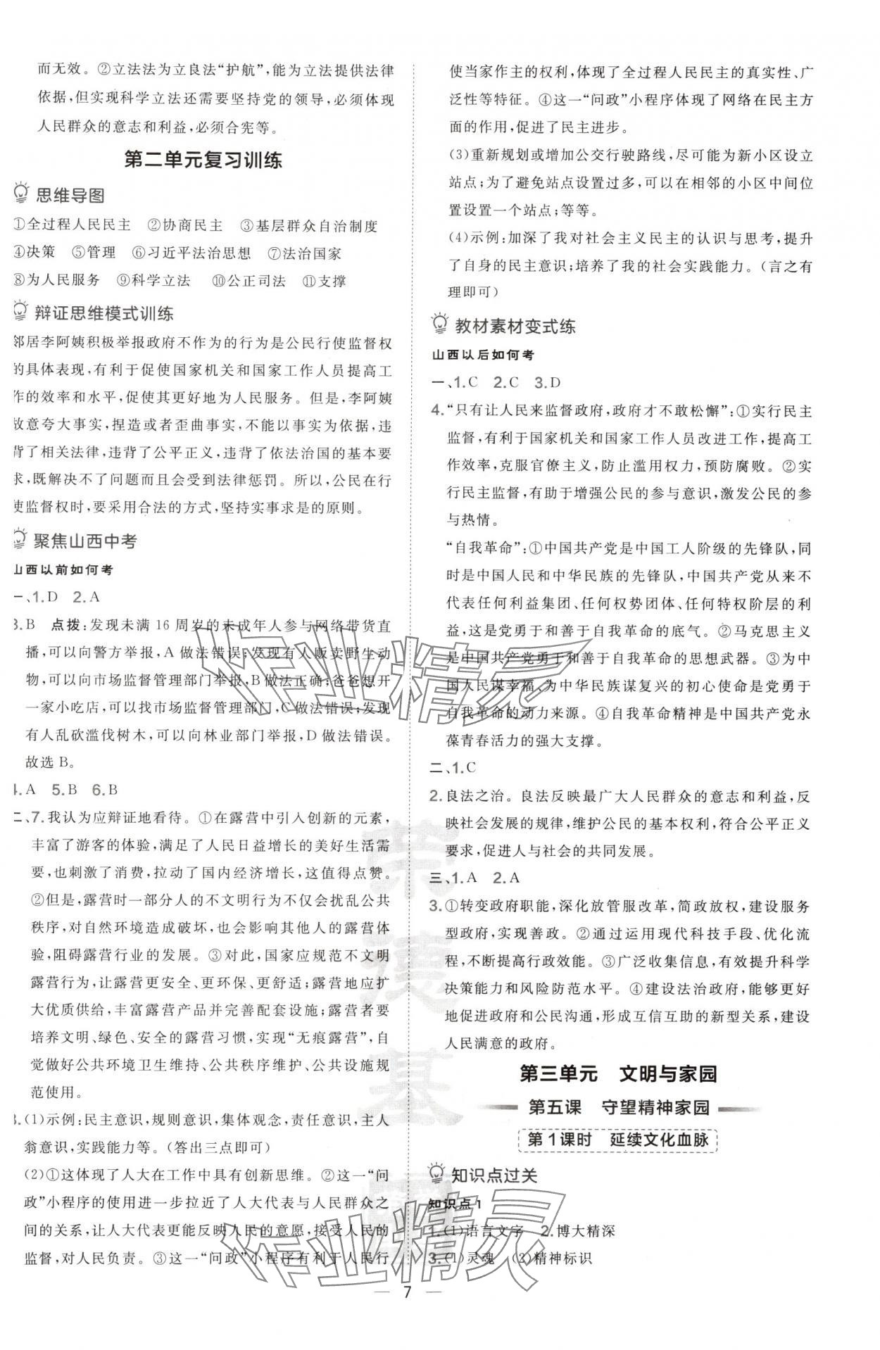 2024年点拨训练九年级道德与法治上册人教版山西专版