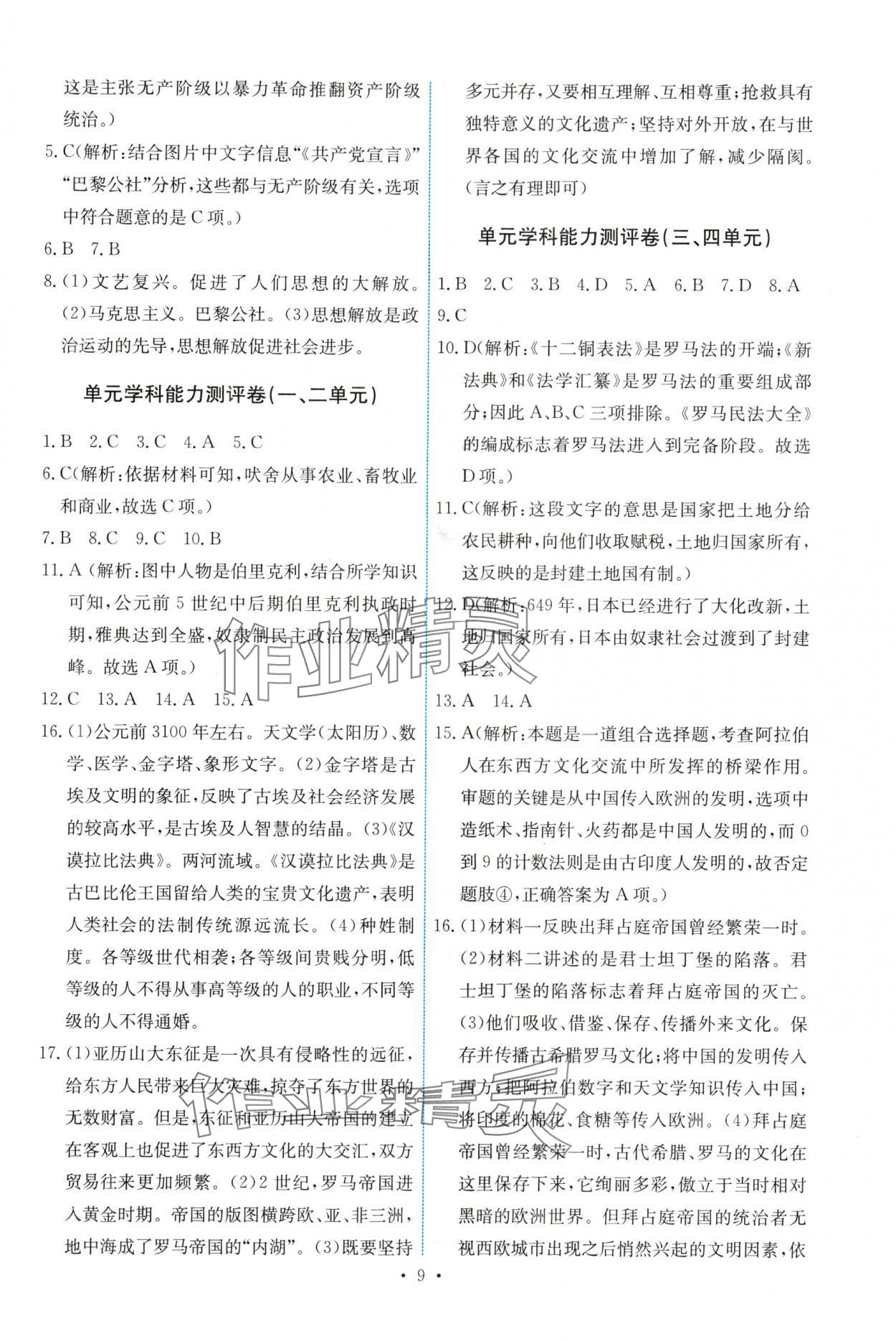2024年能力培养与测试九年级世界历史上册人教版湖南专版