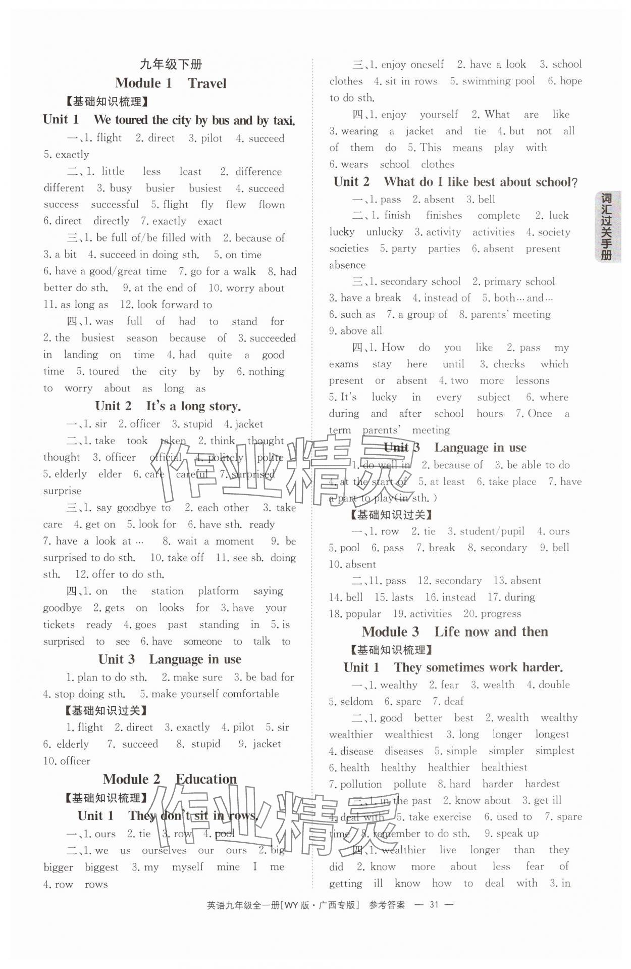 注:目前有些书本章节名称可能整理的还不是很完善,但都是按照顺序排列的,请同学们按照顺序仔细查找。练习册 2024年全效学习同步学练测九年级英语全一册外研版广西专版 答案主要是用来给同学们做完题方便对答案用的,请勿直接抄袭。