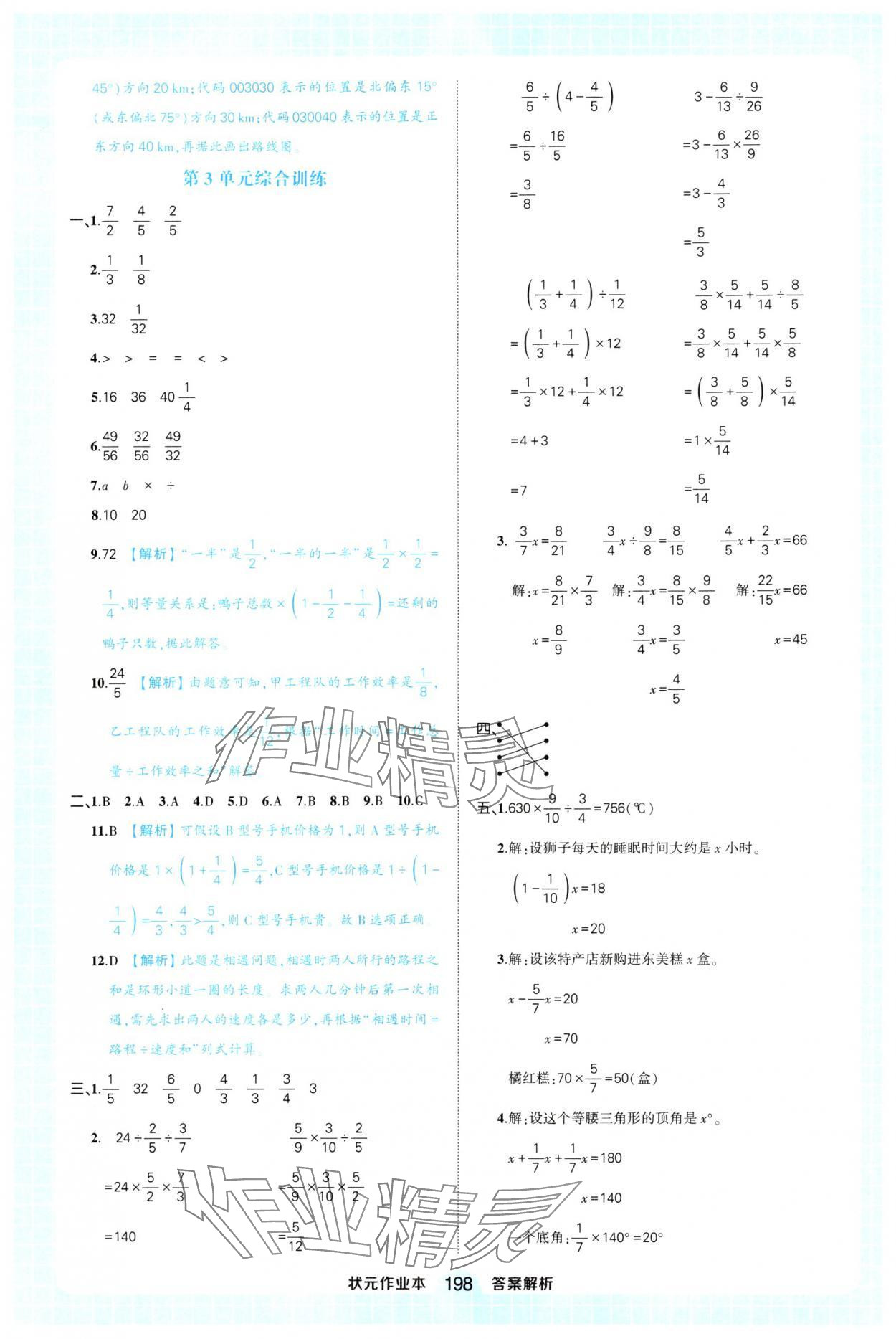 注:目前有些书本章节名称可能整理的还不是很完善,但都是按照顺序排列的,请同学们按照顺序仔细查找。练习册 2024年黄冈状元成才路状元作业本六年级数学上册人教版福建专版 答案主要是用来给同学们做完题方便对答案用的,请勿直接抄袭。