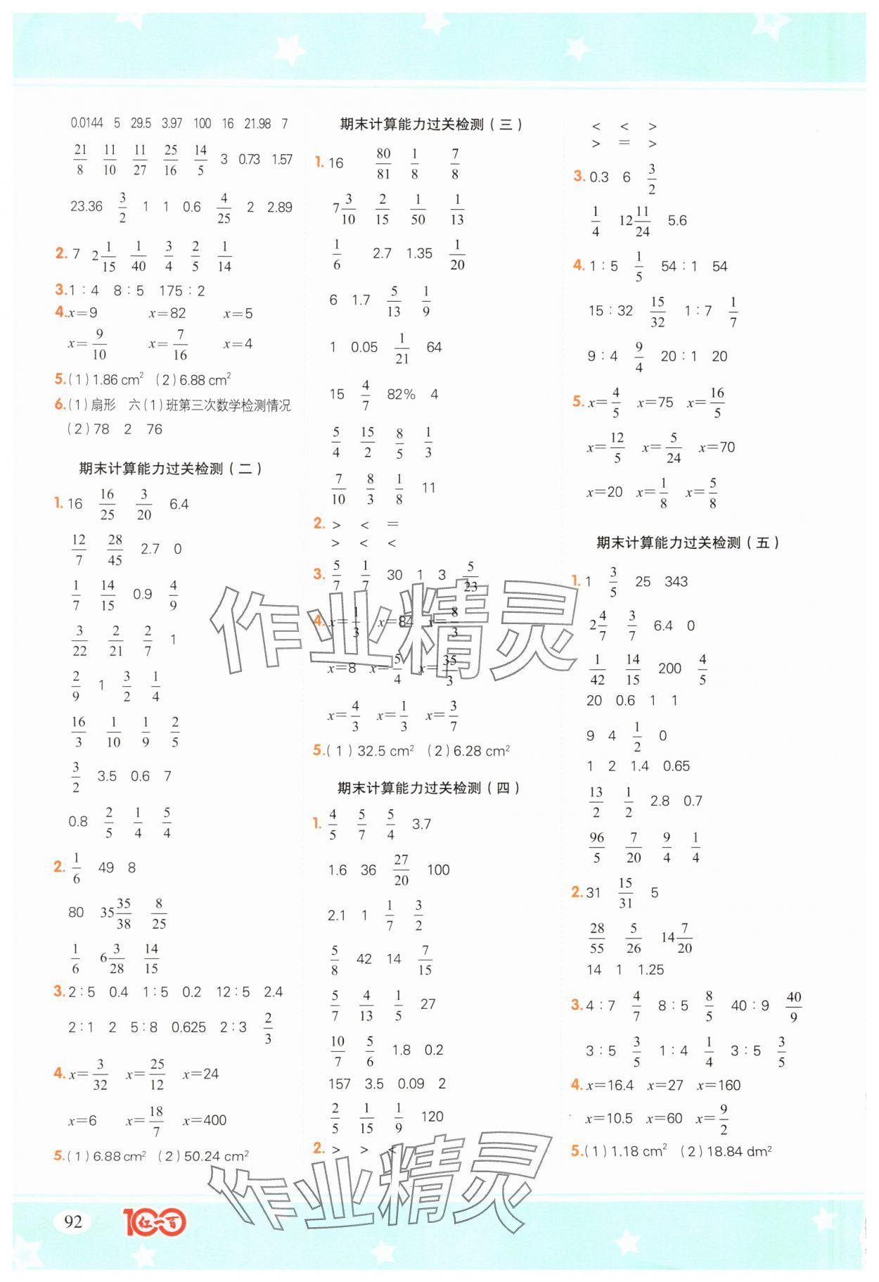注:目前有些书本章节名称可能整理的还不是很完善,但都是按照顺序排列的,请同学们按照顺序仔细查找。练习册 2024年计算一本通六年级数学上册人教版广东专版 答案主要是用来给同学们做完题方便对答案用的,请勿直接抄袭。