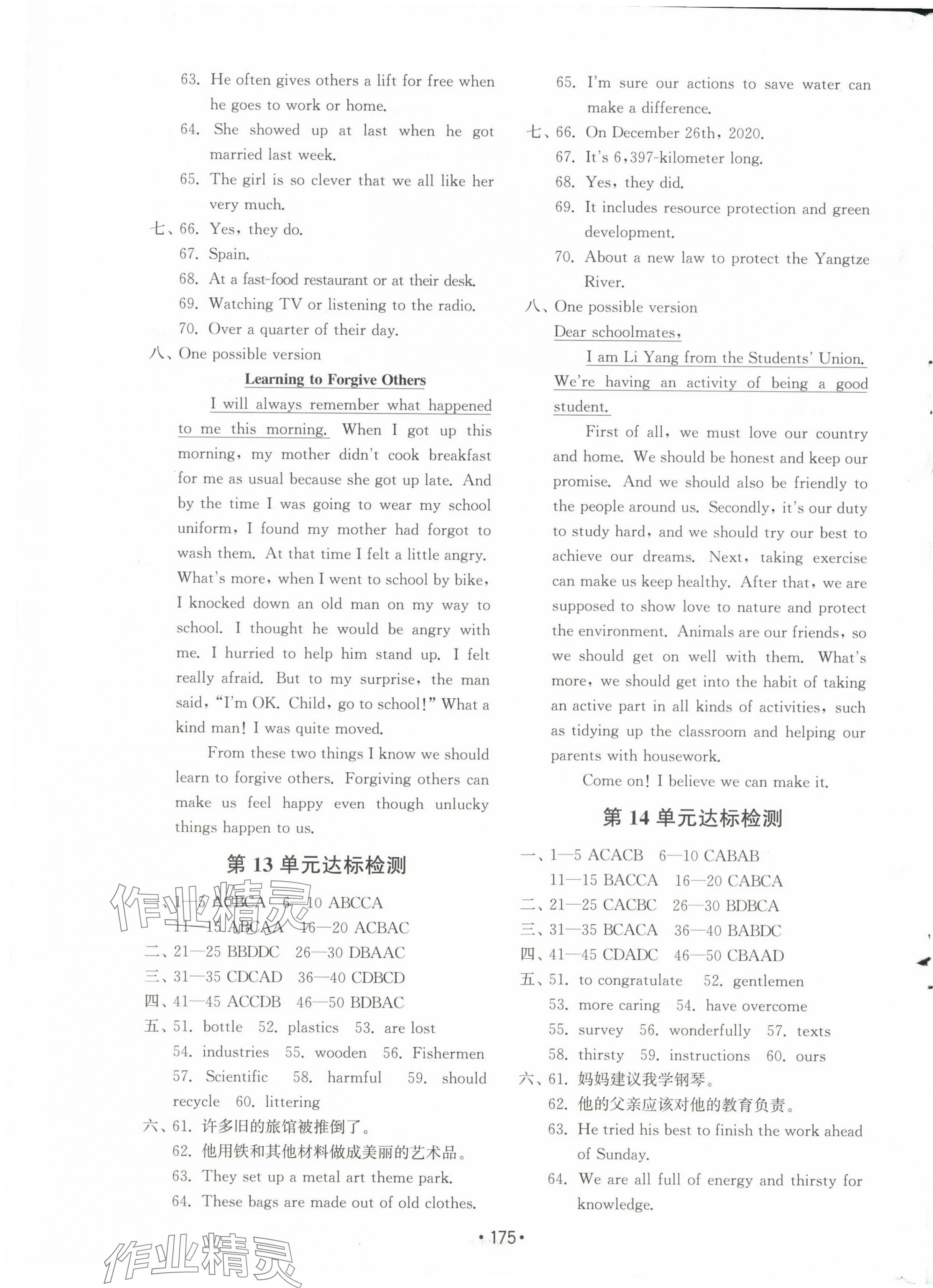 注:目前有些书本章节名称可能整理的还不是很完善,但都是按照顺序排列的,请同学们按照顺序仔细查找。练习册 2024年初中基础训练山东教育出版社九年级英语全一册人教版 答案主要是用来给同学们做完题方便对答案用的,请勿直接抄袭。