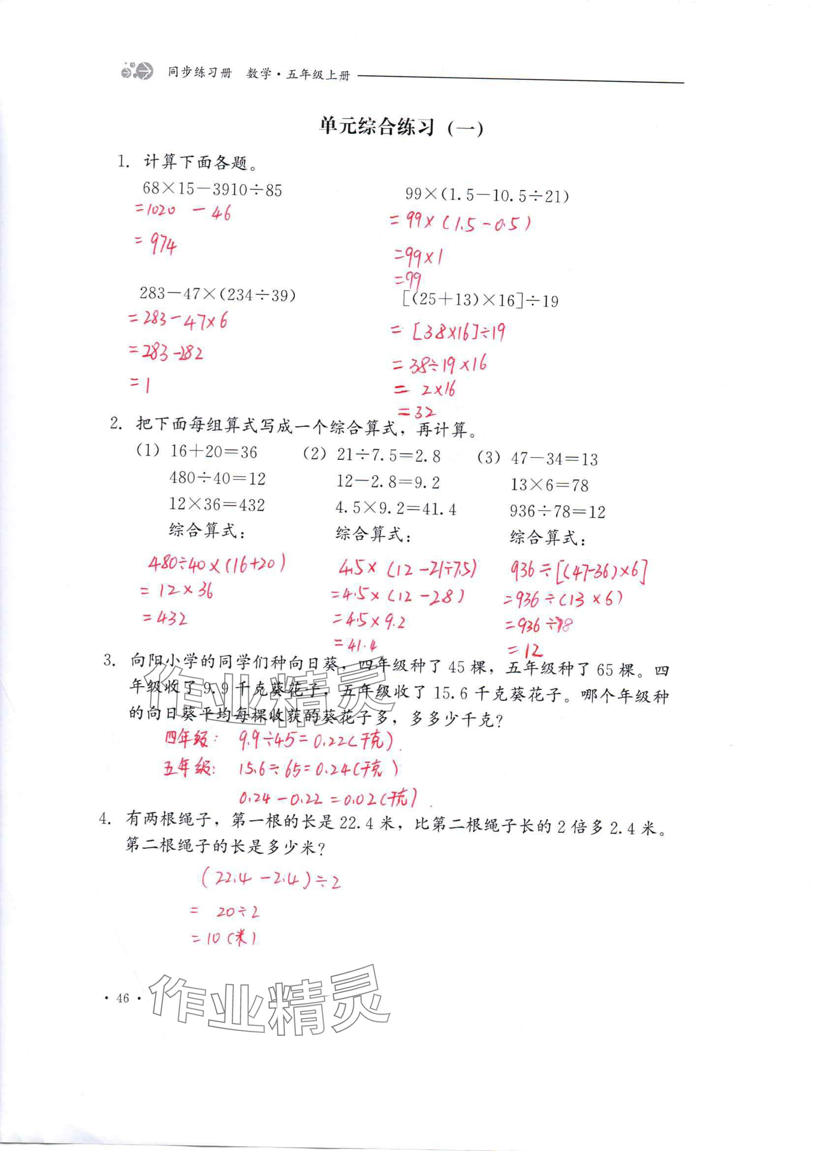 注:目前有些书本章节名称可能整理的还不是很完善,但都是按照顺序排列的,请同学们按照顺序仔细查找。练习册 2024年同步练习册河北教育出版社五年级数学上册冀教版 答案主要是用来给同学们做完题方便对答案用的,请勿直接抄袭。