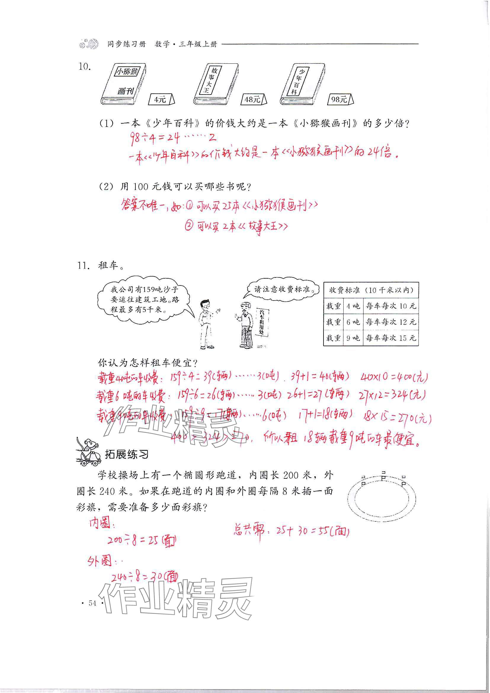 注:目前有些书本章节名称可能整理的还不是很完善,但都是按照顺序排列的,请同学们按照顺序仔细查找。练习册 2024年同步练习册河北教育出版社三年级数学上册冀教版 答案主要是用来给同学们做完题方便对答案用的,请勿直接抄袭。