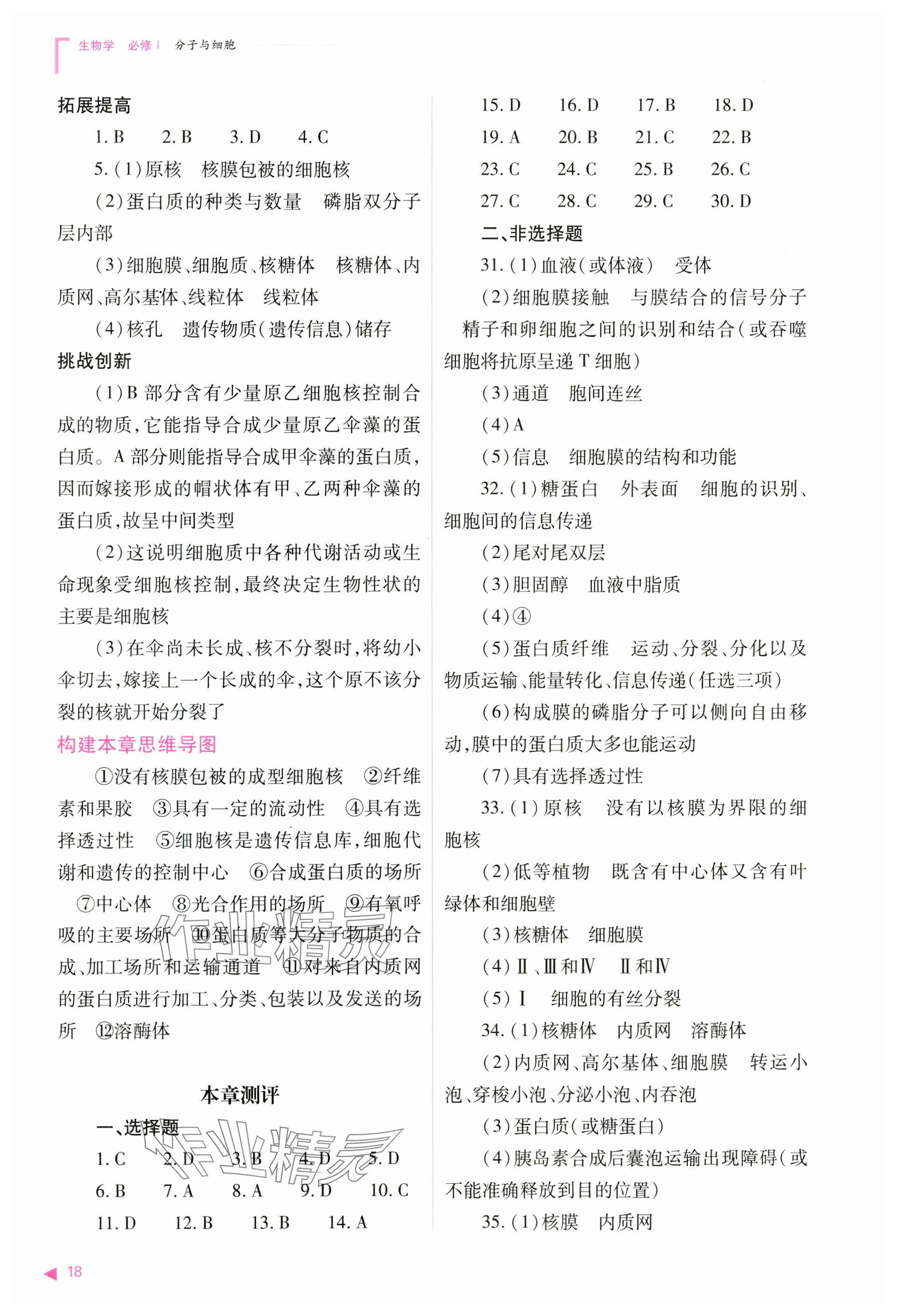 注:目前有些书本章节名称可能整理的还不是很完善,但都是按照顺序排列的,请同学们按照顺序仔细查找。练习册 2024年普通高中新课程同步练习册高中生物必修1人教版 答案主要是用来给同学们做完题方便对答案用的,请勿直接抄袭。