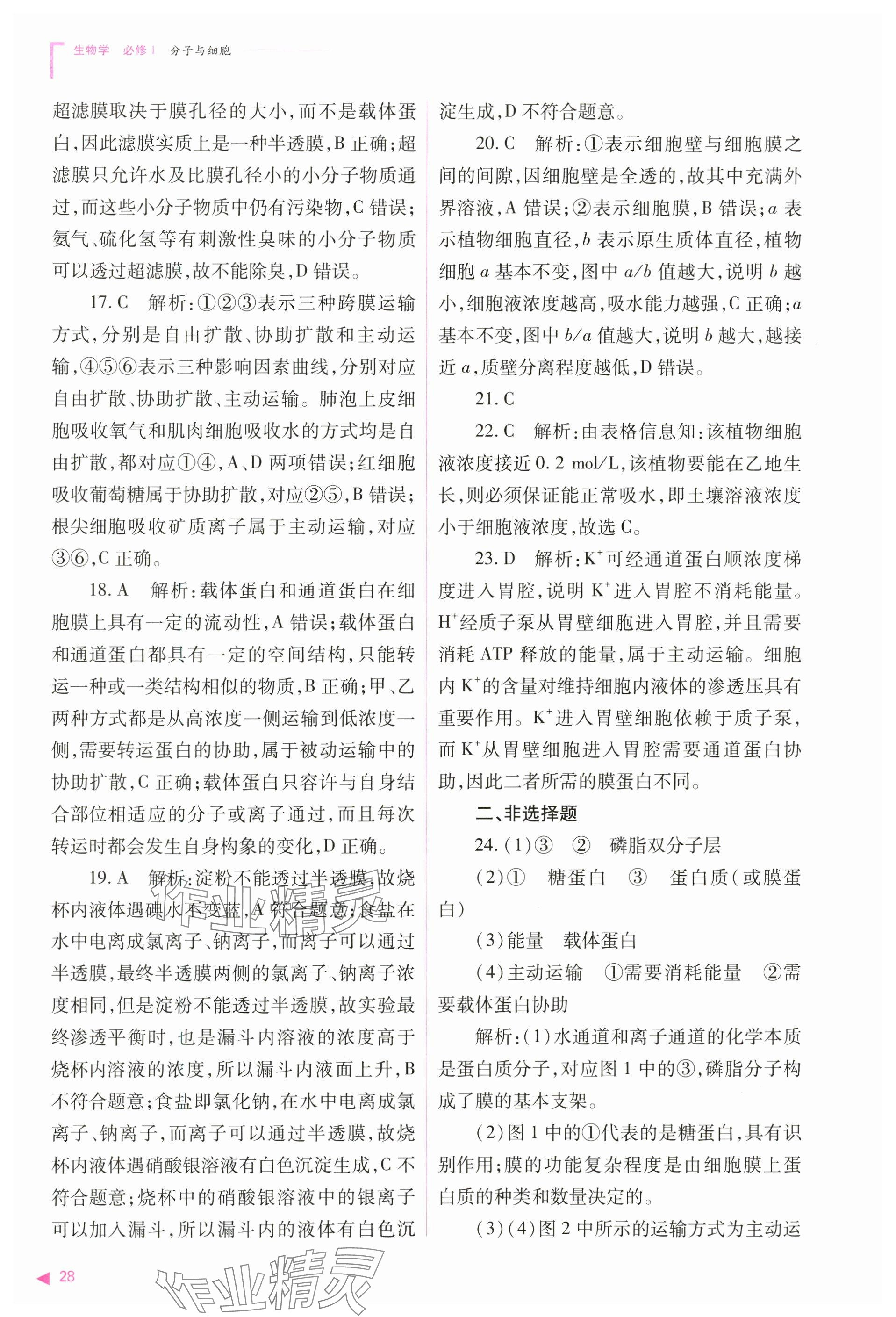 注:目前有些书本章节名称可能整理的还不是很完善,但都是按照顺序排列的,请同学们按照顺序仔细查找。练习册 2024年普通高中新课程同步练习册高中生物必修1人教版 答案主要是用来给同学们做完题方便对答案用的,请勿直接抄袭。