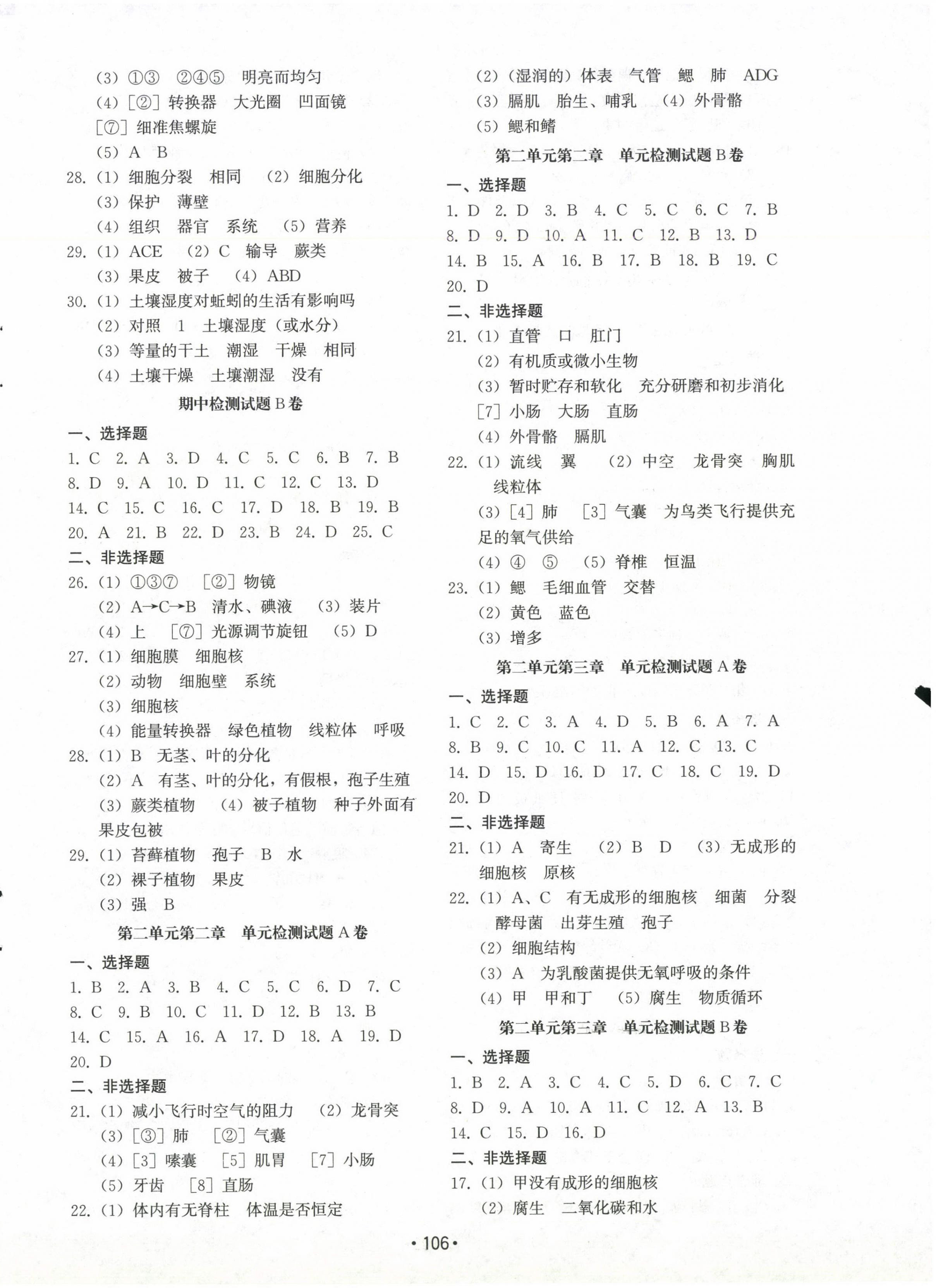 注:目前有些书本章节名称可能整理的还不是很完善,但都是按照顺序排列的,请同学们按照顺序仔细查找。练习册 2024年初中基础训练山东教育出版社七年级生物上册济南版 答案主要是用来给同学们做完题方便对答案用的,请勿直接抄袭。