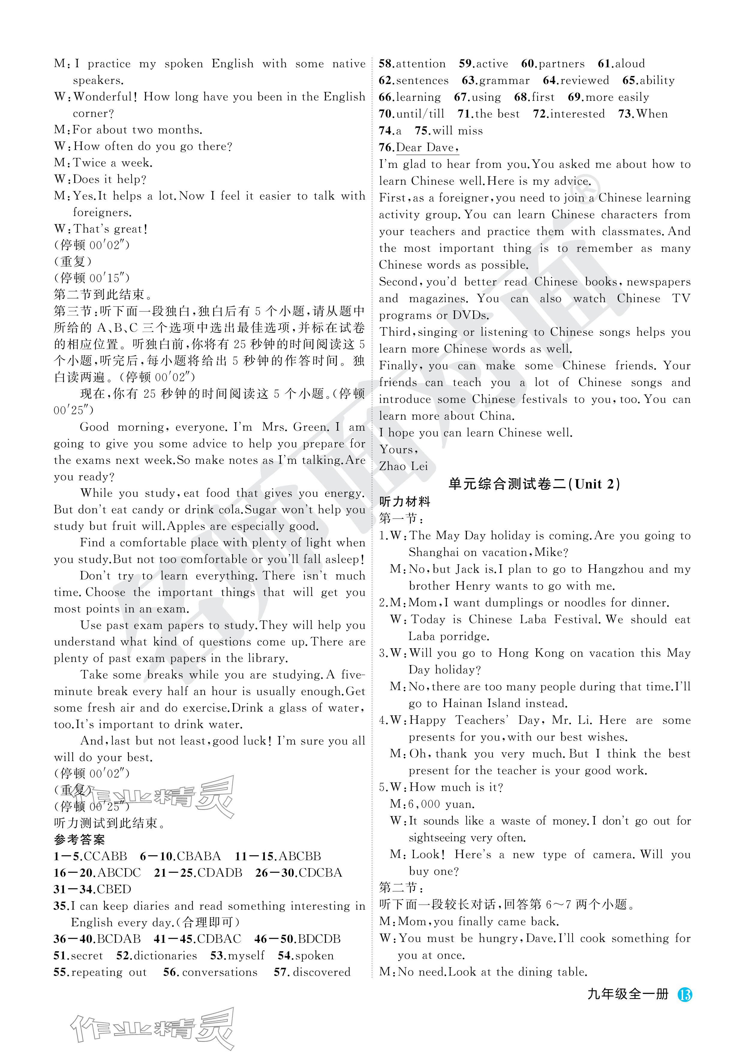 注:目前有些书本章节名称可能整理的还不是很完善,但都是按照顺序排列的,请同学们按照顺序仔细查找。练习册 2024年名师面对面学科素养评价九年级英语全一册人教版 答案主要是用来给同学们做完题方便对答案用的,请勿直接抄袭。