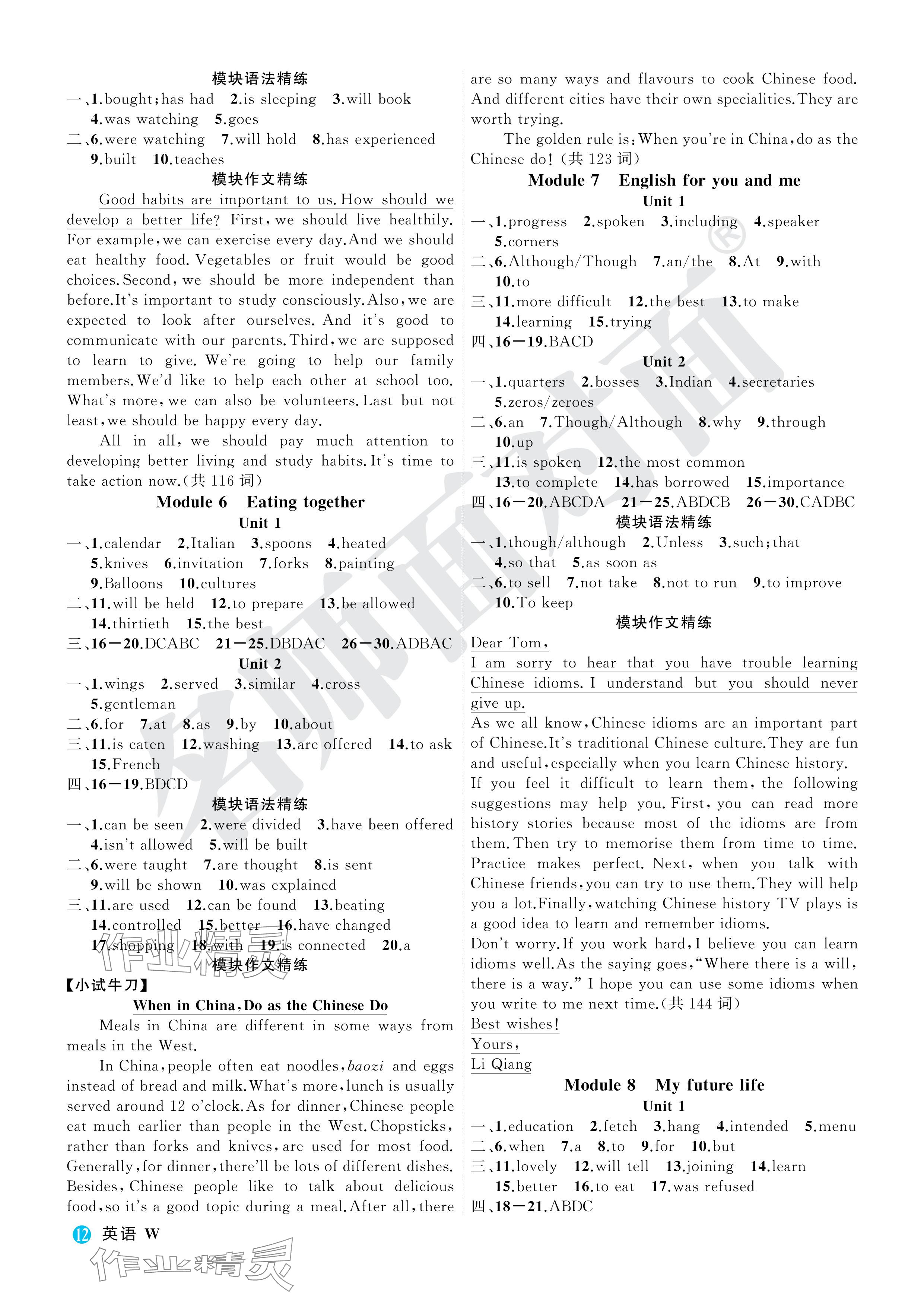 注:目前有些书本章节名称可能整理的还不是很完善,但都是按照顺序排列的,请同学们按照顺序仔细查找。练习册 2024年名师面对面学科素养评价九年级英语全一册外研版 答案主要是用来给同学们做完题方便对答案用的,请勿直接抄袭。