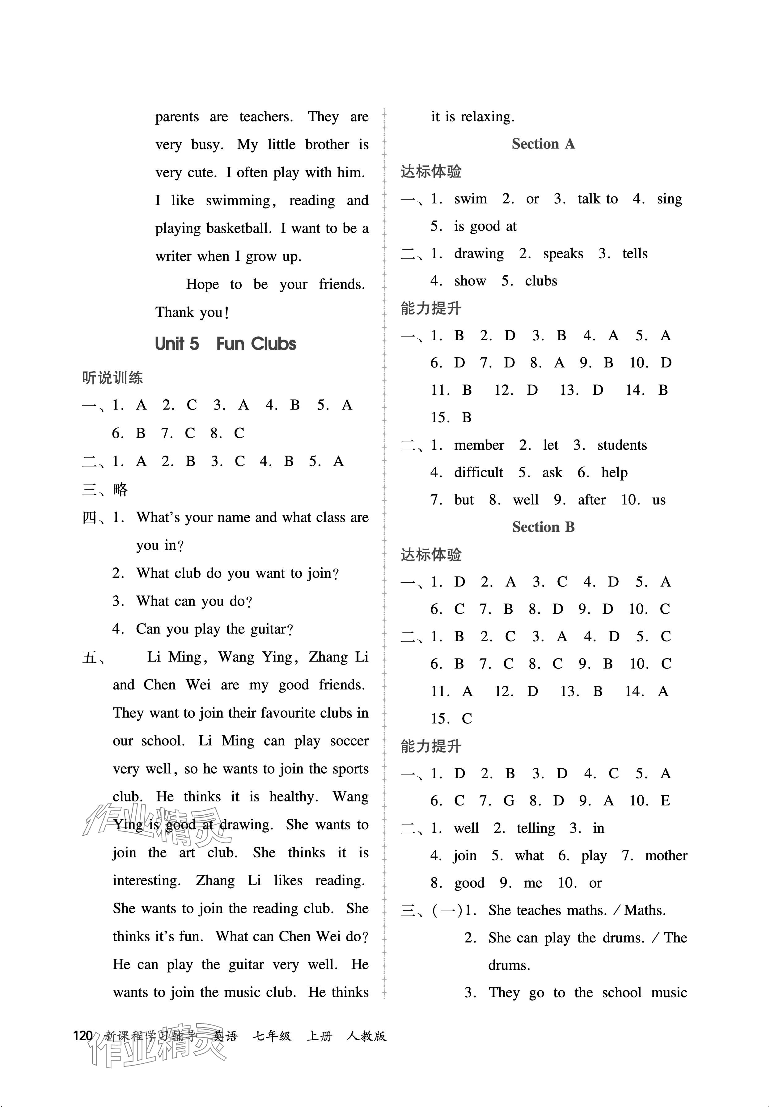 注:目前有些书本章节名称可能整理的还不是很完善,但都是按照顺序排列的,请同学们按照顺序仔细查找。练习册 2024年新课程学习辅导七年级英语上册人教版中山专版 答案主要是用来给同学们做完题方便对答案用的,请勿直接抄袭。