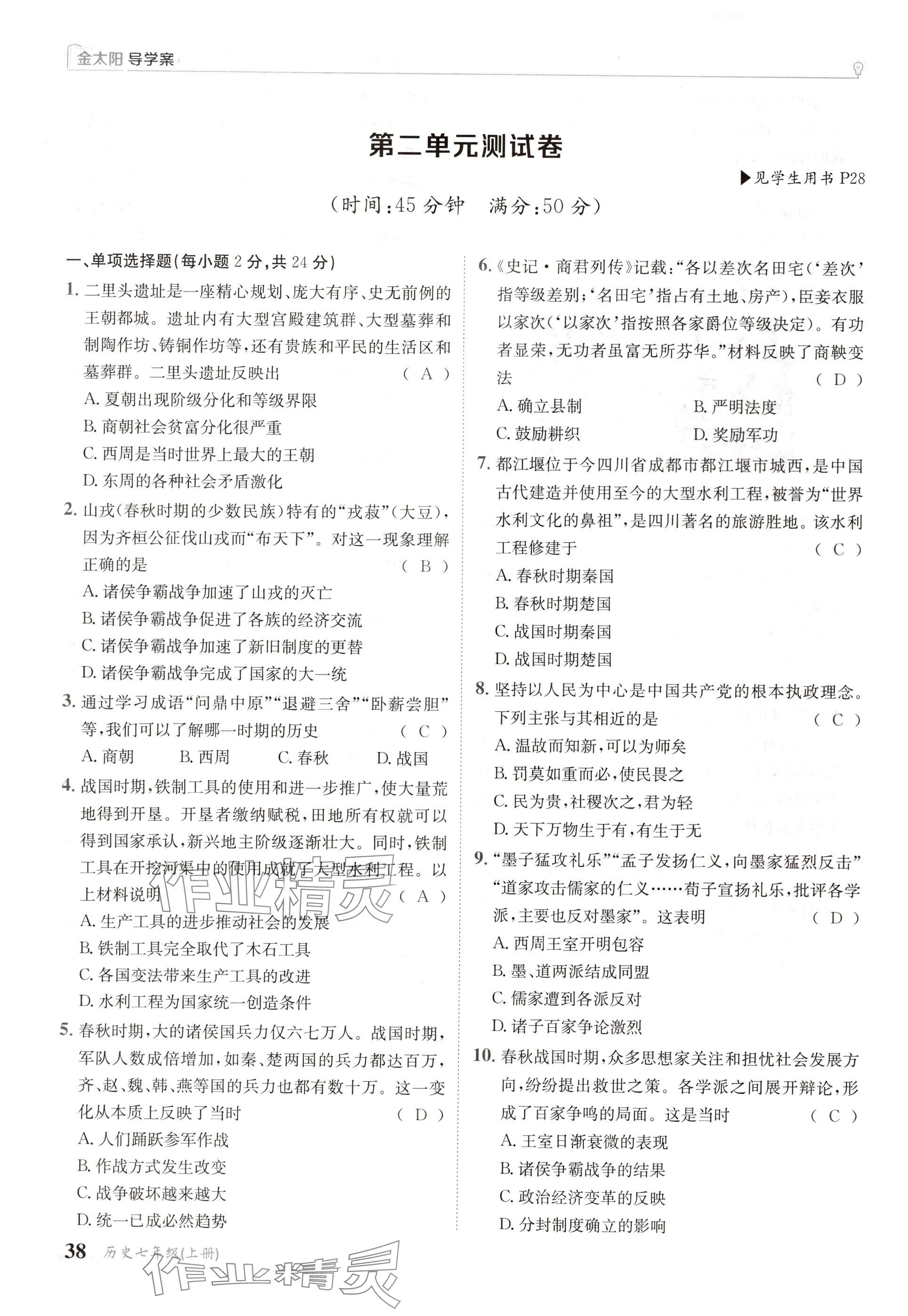 注:目前有些书本章节名称可能整理的还不是很完善,但都是按照顺序排列的,请同学们按照顺序仔细查找。练习册 2024年金太阳导学案七年级历史上册人教版 答案主要是用来给同学们做完题方便对答案用的,请勿直接抄袭。