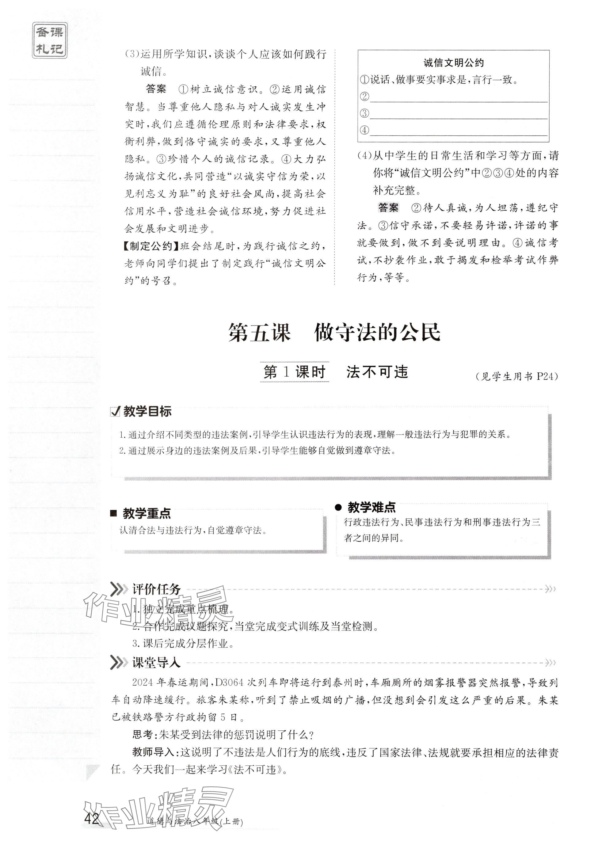 注:目前有些书本章节名称可能整理的还不是很完善,但都是按照顺序排列的,请同学们按照顺序仔细查找。练习册 2024年金太阳导学案八年级道德与法治上册人教版 答案主要是用来给同学们做完题方便对答案用的,请勿直接抄袭。