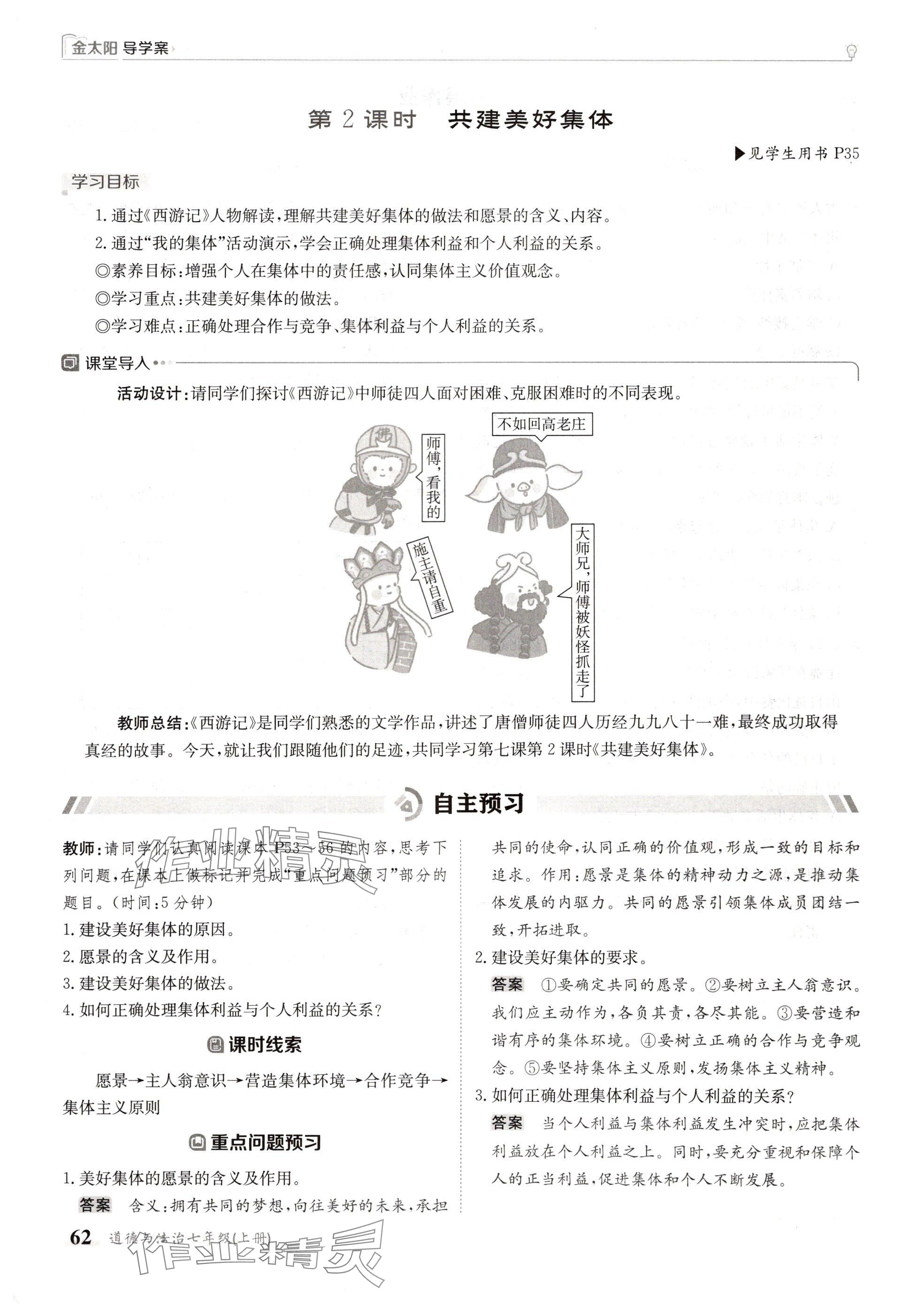 2024年金太阳导学案七年级道德与法治上册人教版