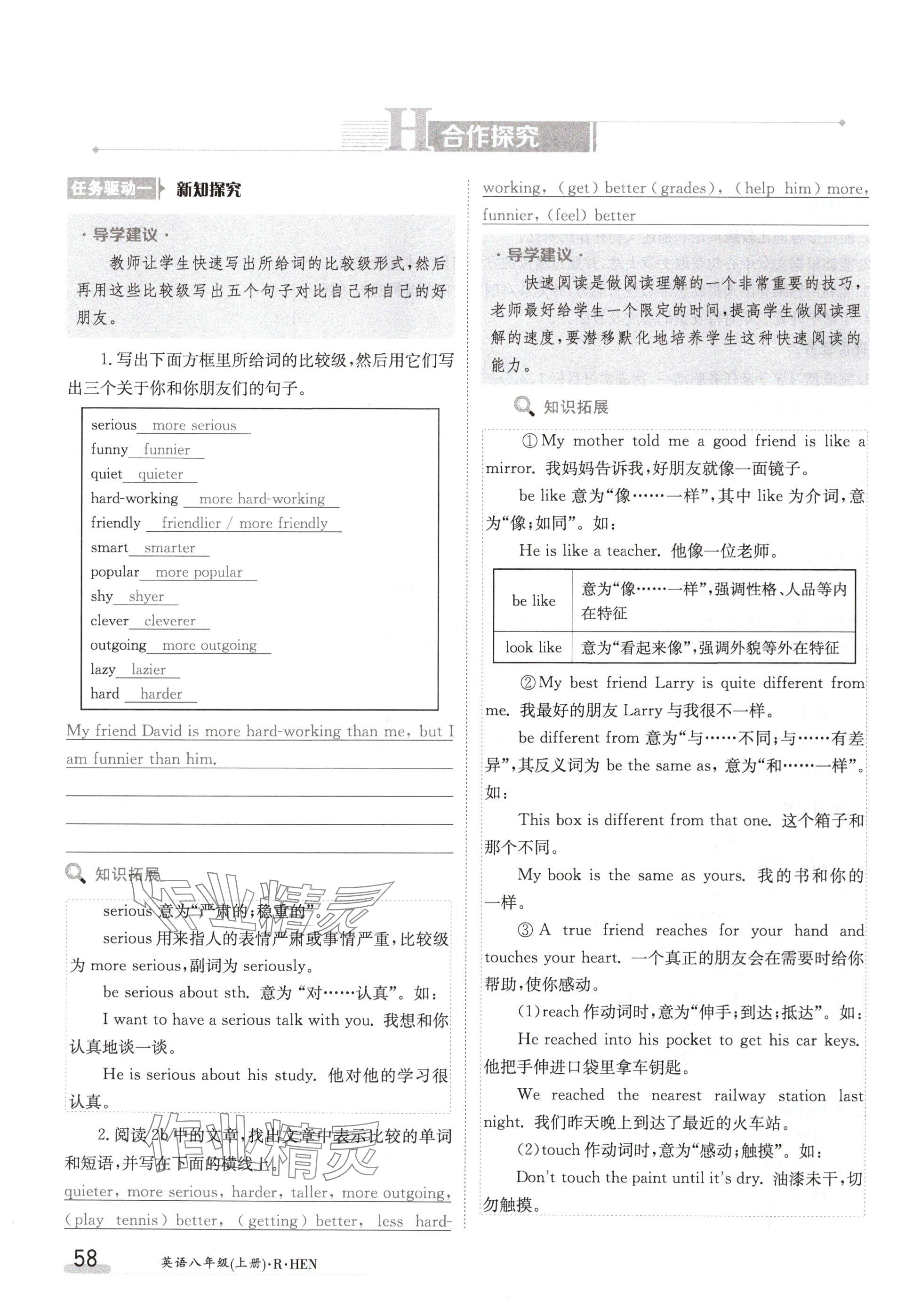 注:目前有些书本章节名称可能整理的还不是很完善,但都是按照顺序排列的,请同学们按照顺序仔细查找。练习册 2024年金太阳导学案八年级英语上册人教版 答案主要是用来给同学们做完题方便对答案用的,请勿直接抄袭。
