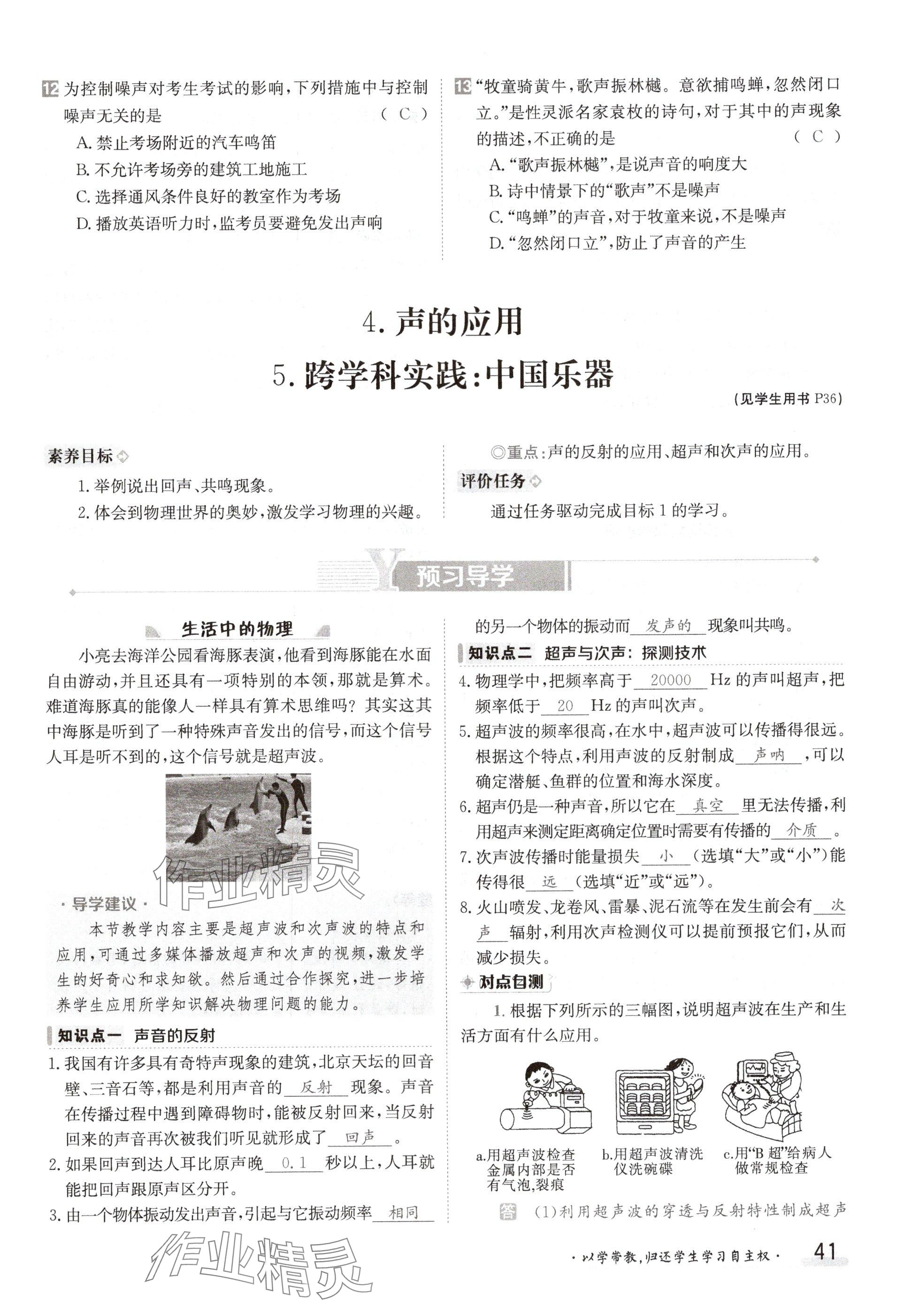 注:目前有些书本章节名称可能整理的还不是很完善,但都是按照顺序排列的,请同学们按照顺序仔细查找。练习册 2024年金太阳导学案八年级物理上册教科版 答案主要是用来给同学们做完题方便对答案用的,请勿直接抄袭。
