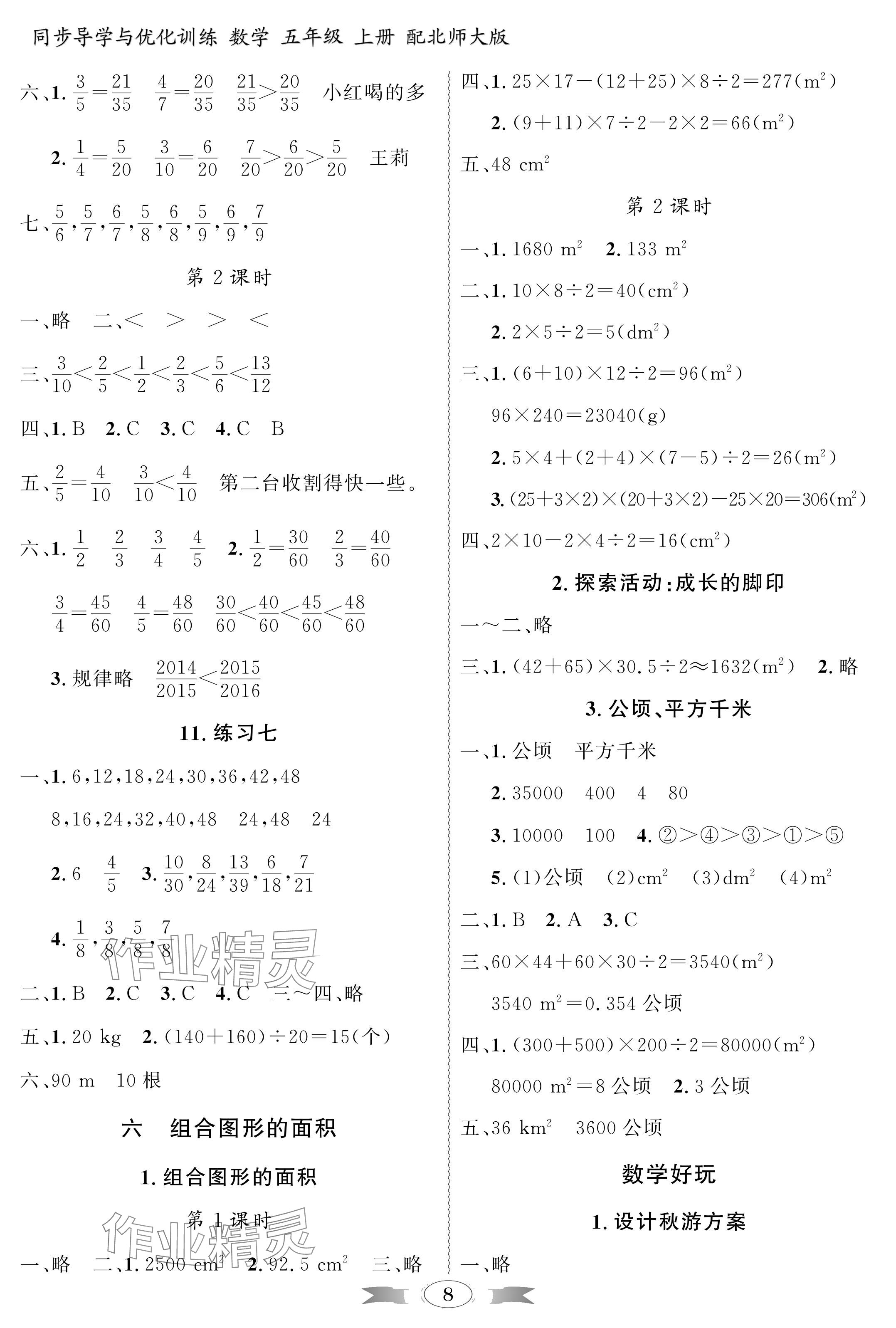 注:目前有些书本章节名称可能整理的还不是很完善,但都是按照顺序排列的,请同学们按照顺序仔细查找。练习册 2024年同步导学与优化训练五年级数学上册北师大版 答案主要是用来给同学们做完题方便对答案用的,请勿直接抄袭。