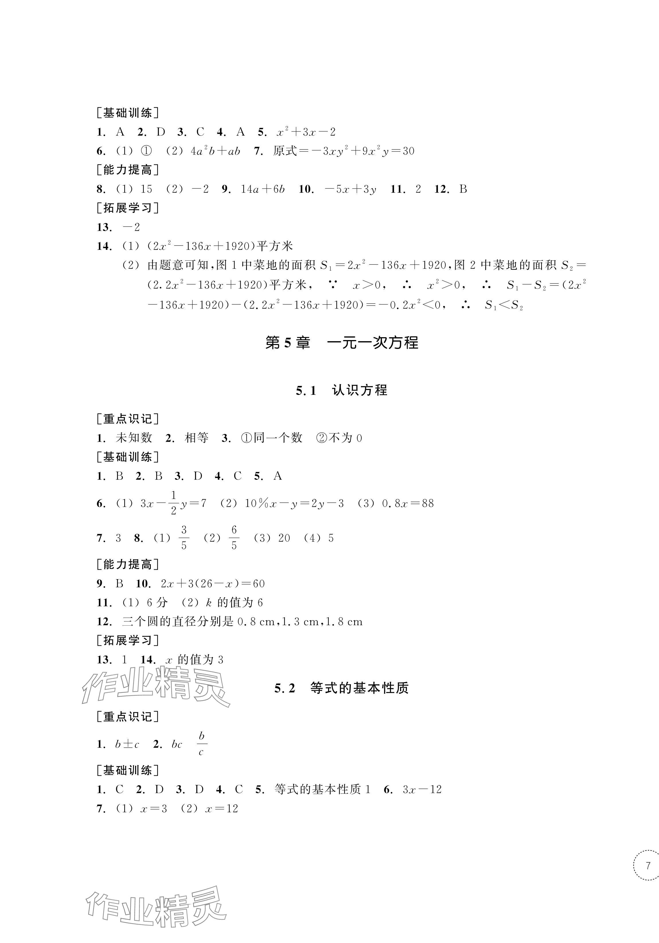 注:目前有些书本章节名称可能整理的还不是很完善,但都是按照顺序排列的,请同学们按照顺序仔细查找。练习册 2024年单元学习指导与练习七年级数学上册浙教版 答案主要是用来给同学们做完题方便对答案用的,请勿直接抄袭。