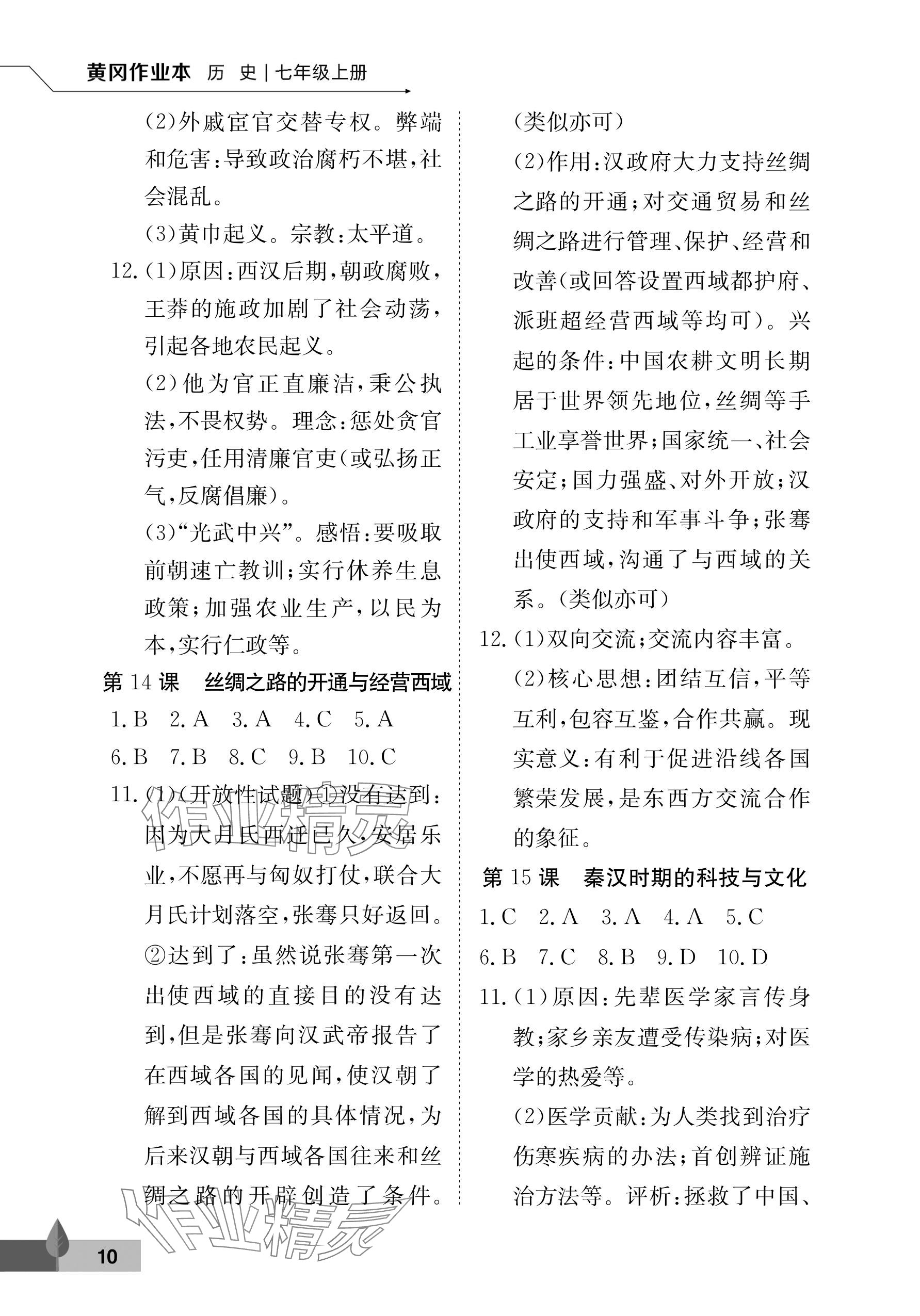 注:目前有些书本章节名称可能整理的还不是很完善,但都是按照顺序排列的,请同学们按照顺序仔细查找。练习册 2024年黄冈作业本武汉大学出版社七年级历史上册人教版 答案主要是用来给同学们做完题方便对答案用的,请勿直接抄袭。