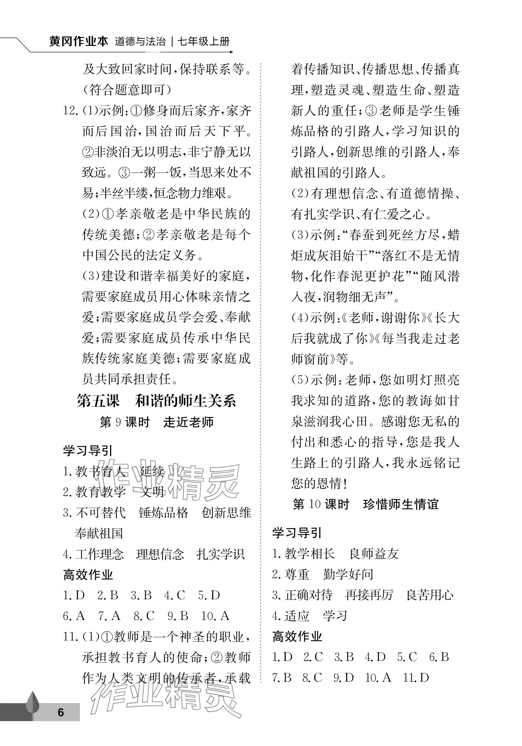注:目前有些书本章节名称可能整理的还不是很完善,但都是按照顺序排列的,请同学们按照顺序仔细查找。练习册 2024年黄冈作业本武汉大学出版社七年级道德与法治上册人教版 答案主要是用来给同学们做完题方便对答案用的,请勿直接抄袭。