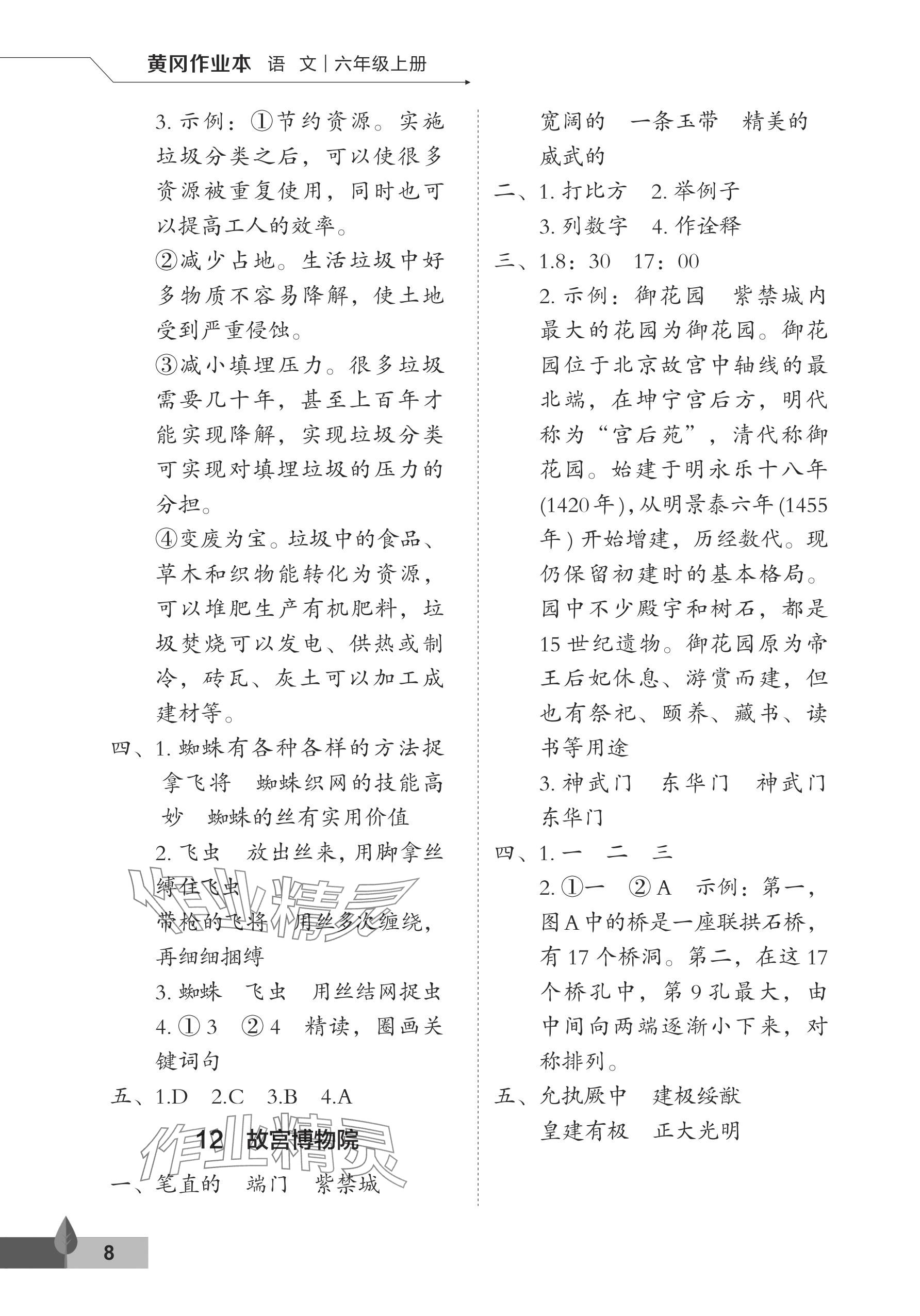 注:目前有些书本章节名称可能整理的还不是很完善,但都是按照顺序排列的,请同学们按照顺序仔细查找。练习册 2024年黄冈作业本武汉大学出版社六年级语文上册人教版 答案主要是用来给同学们做完题方便对答案用的,请勿直接抄袭。