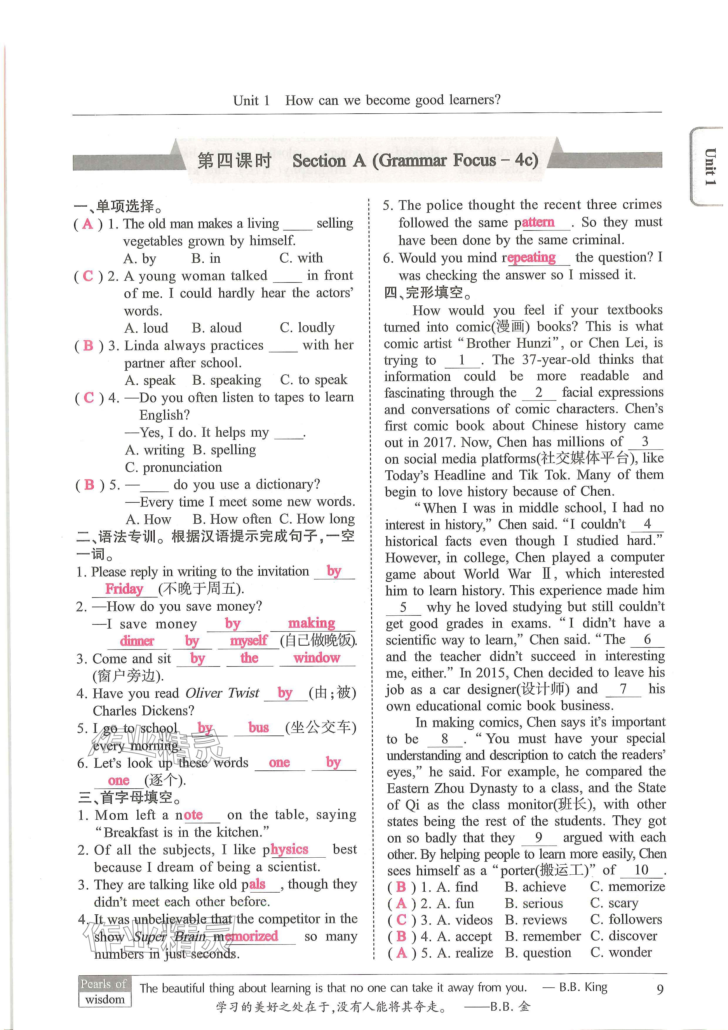 精英家教网> 2024年新视界初中英语九年级英语上册人教版 > 参考答案第9页 参考答案