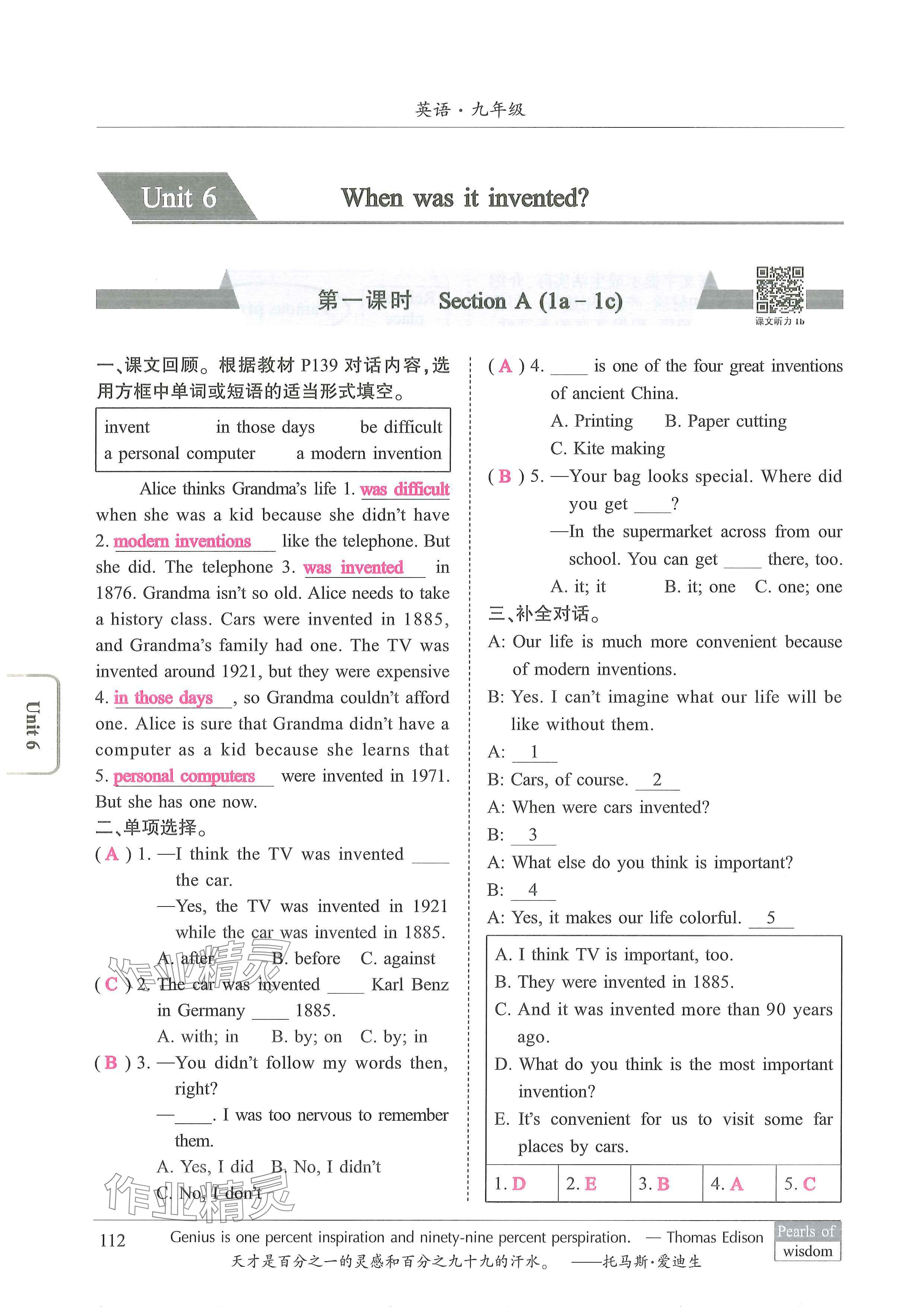 - 参考答案第112页