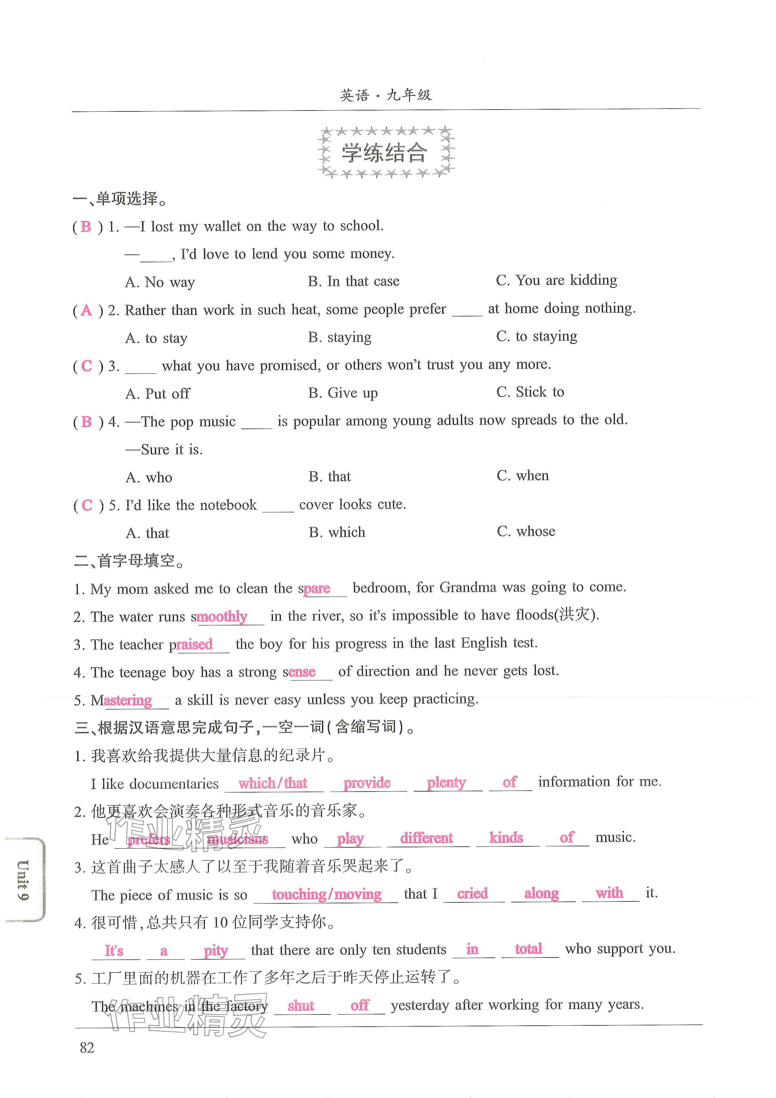 注:目前有些书本章节名称可能整理的还不是很完善,但都是按照顺序排列的,请同学们按照顺序仔细查找。练习册 2024年新视界初中英语九年级英语上册人教版 答案主要是用来给同学们做完题方便对答案用的,请勿直接抄袭。