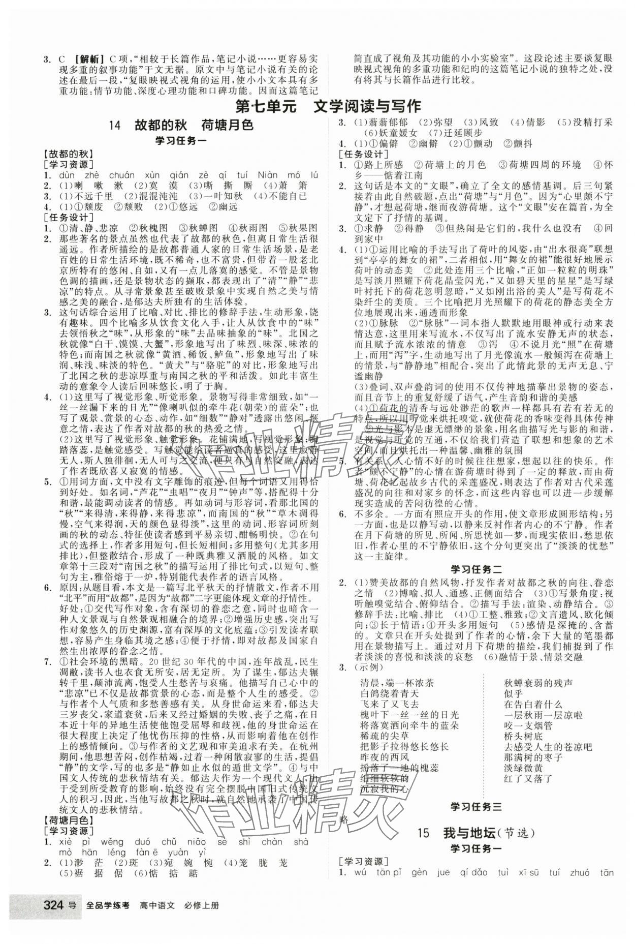 注:目前有些书本章节名称可能整理的还不是很完善,但都是按照顺序排列的,请同学们按照顺序仔细查找。练习册 2024年全品学练考高中语文必修上册人教版 答案主要是用来给同学们做完题方便对答案用的,请勿直接抄袭。