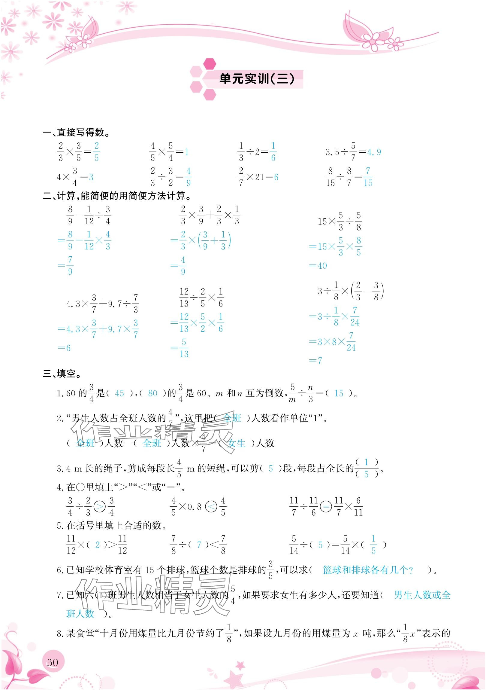 注:目前有些书本章节名称可能整理的还不是很完善,但都是按照顺序排列的,请同学们按照顺序仔细查找。练习册 2024年小学生学习指导丛书六年级数学上册人教版 答案主要是用来给同学们做完题方便对答案用的,请勿直接抄袭。