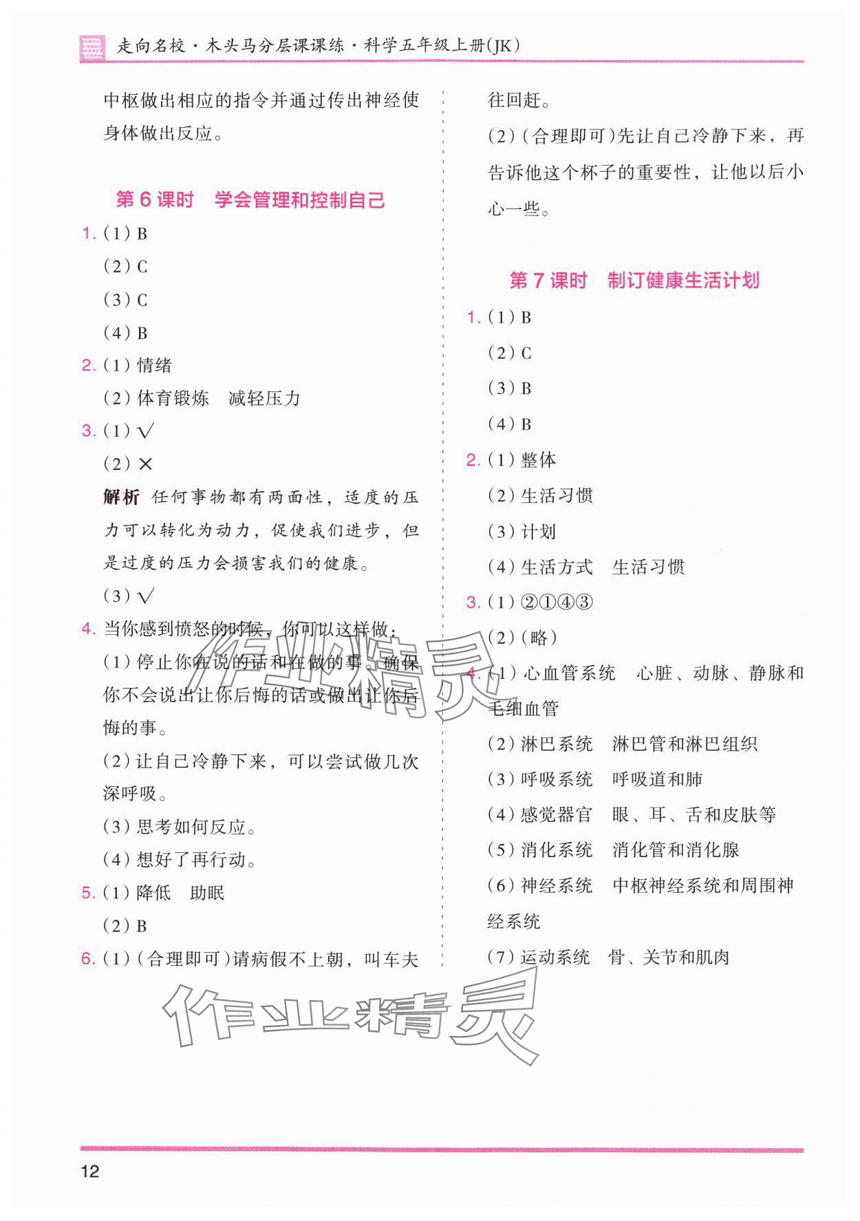 注:目前有些书本章节名称可能整理的还不是很完善,但都是按照顺序排列的,请同学们按照顺序仔细查找。练习册 2024年木头马分层课课练五年级科学上册教科版 答案主要是用来给同学们做完题方便对答案用的,请勿直接抄袭。
