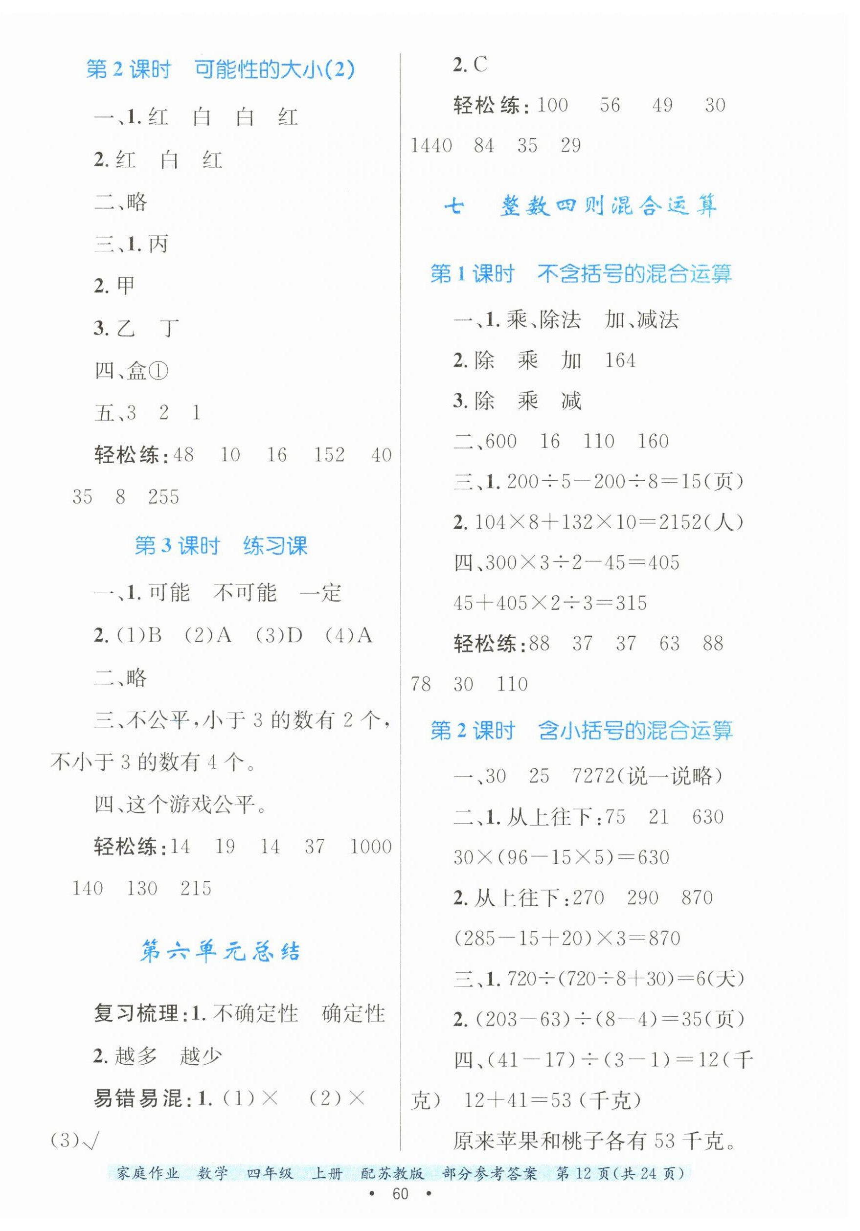 注:目前有些书本章节名称可能整理的还不是很完善,但都是按照顺序排列的,请同学们按照顺序仔细查找。练习册 2024年家庭作业四年级数学上册苏教版 答案主要是用来给同学们做完题方便对答案用的,请勿直接抄袭。
