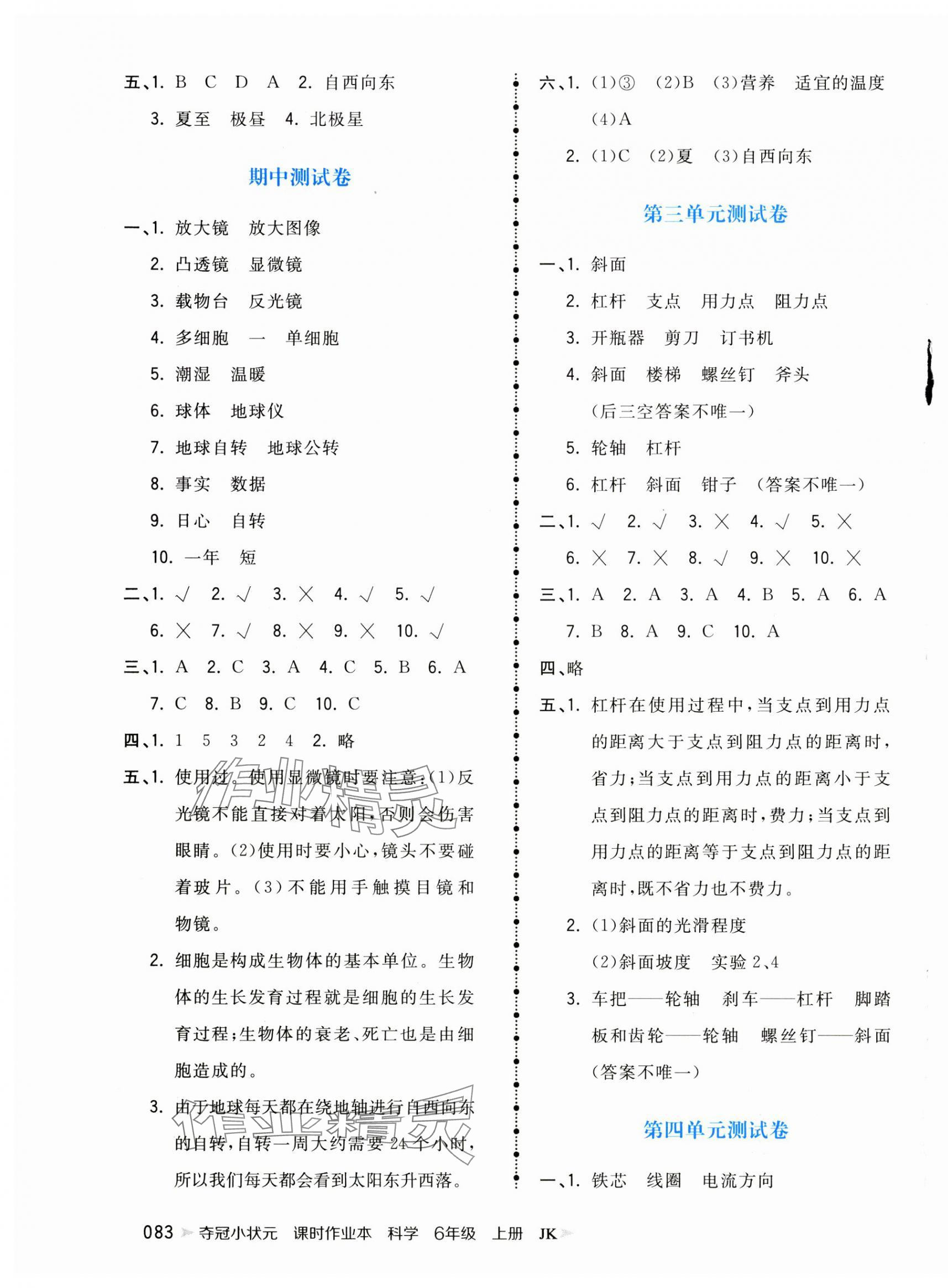 《2024年夺冠小状元课时作业本六年级科学上册教科版》