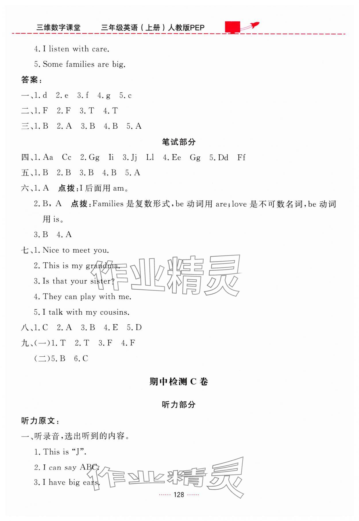 注:目前有些书本章节名称可能整理的还不是很完善,但都是按照顺序排列的,请同学们按照顺序仔细查找。练习册 2024年三维数字课堂三年级英语上册人教版 答案主要是用来给同学们做完题方便对答案用的,请勿直接抄袭。