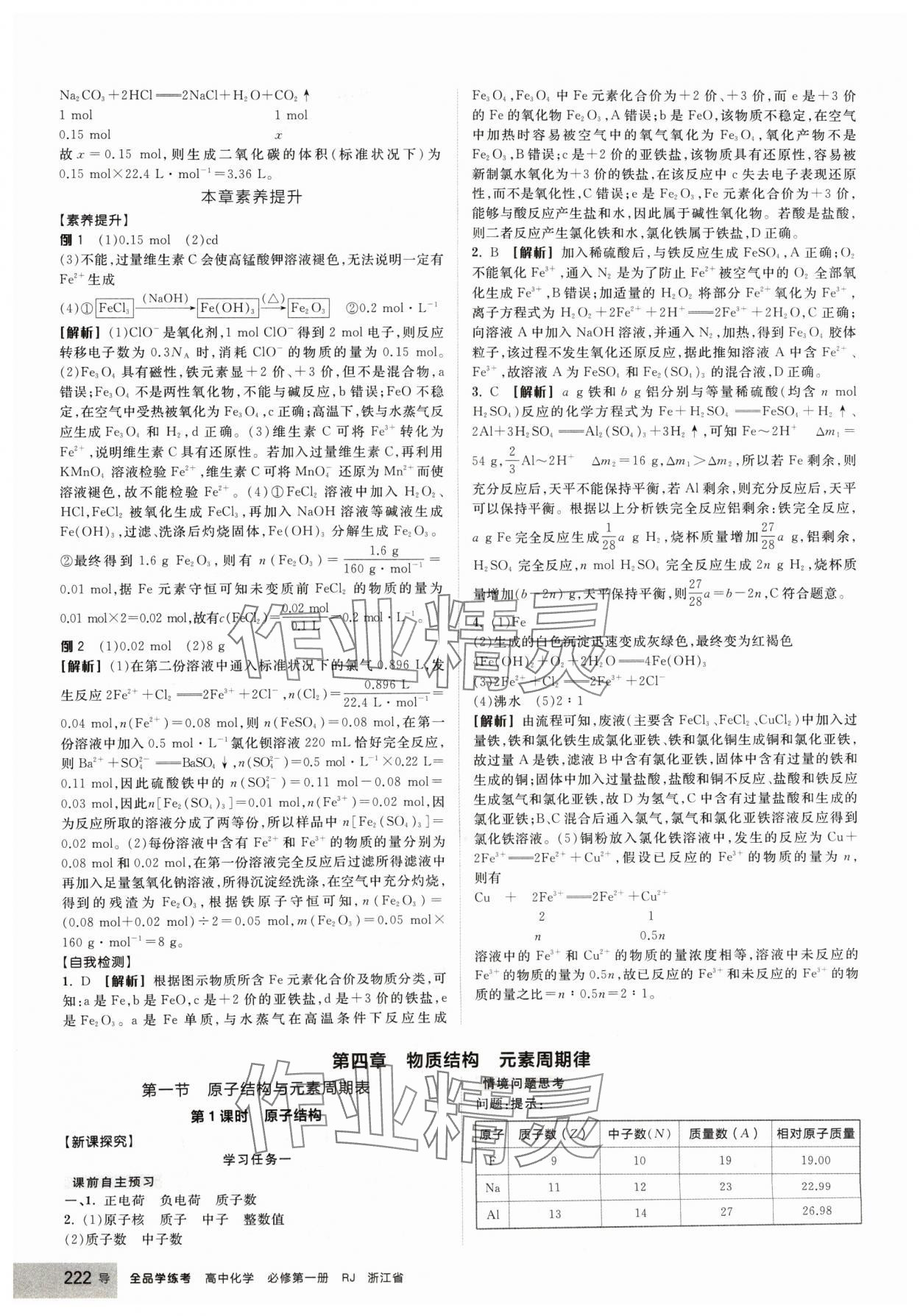 注:目前有些书本章节名称可能整理的还不是很完善,但都是按照顺序排列的,请同学们按照顺序仔细查找。练习册 2024年全品学练考高中化学必修第一册人教版浙江专版 答案主要是用来给同学们做完题方便对答案用的,请勿直接抄袭。