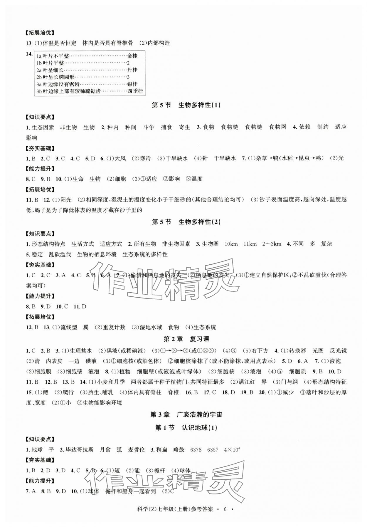 注:目前有些书本章节名称可能整理的还不是很完善,但都是按照顺序排列的,请同学们按照顺序仔细查找。练习册 2024年习题e百课时训练七年级科学上册浙教版 答案主要是用来给同学们做完题方便对答案用的,请勿直接抄袭。